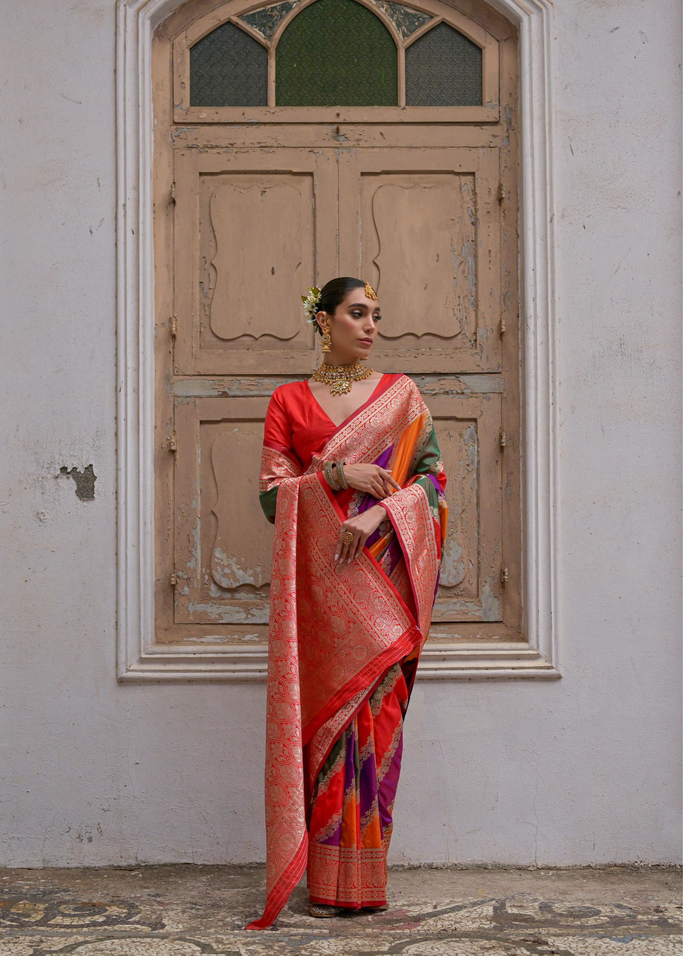 Red Handloom Woven Kadwa Style Designer Banarasi Silk Saree