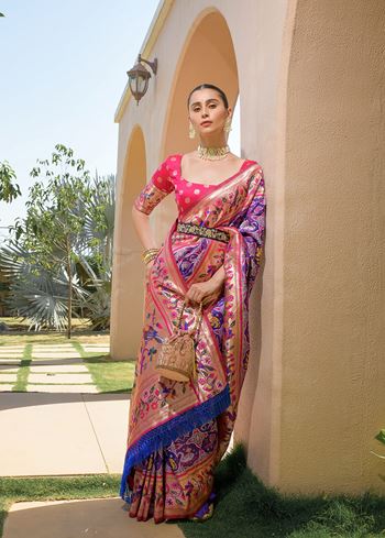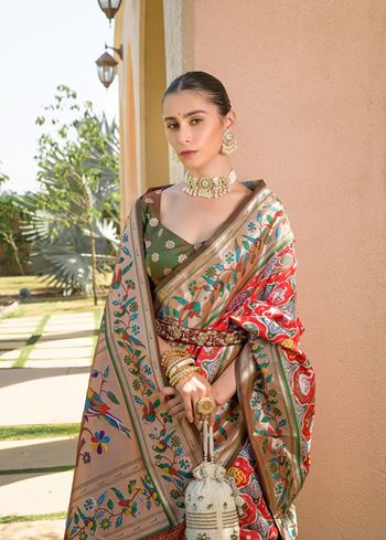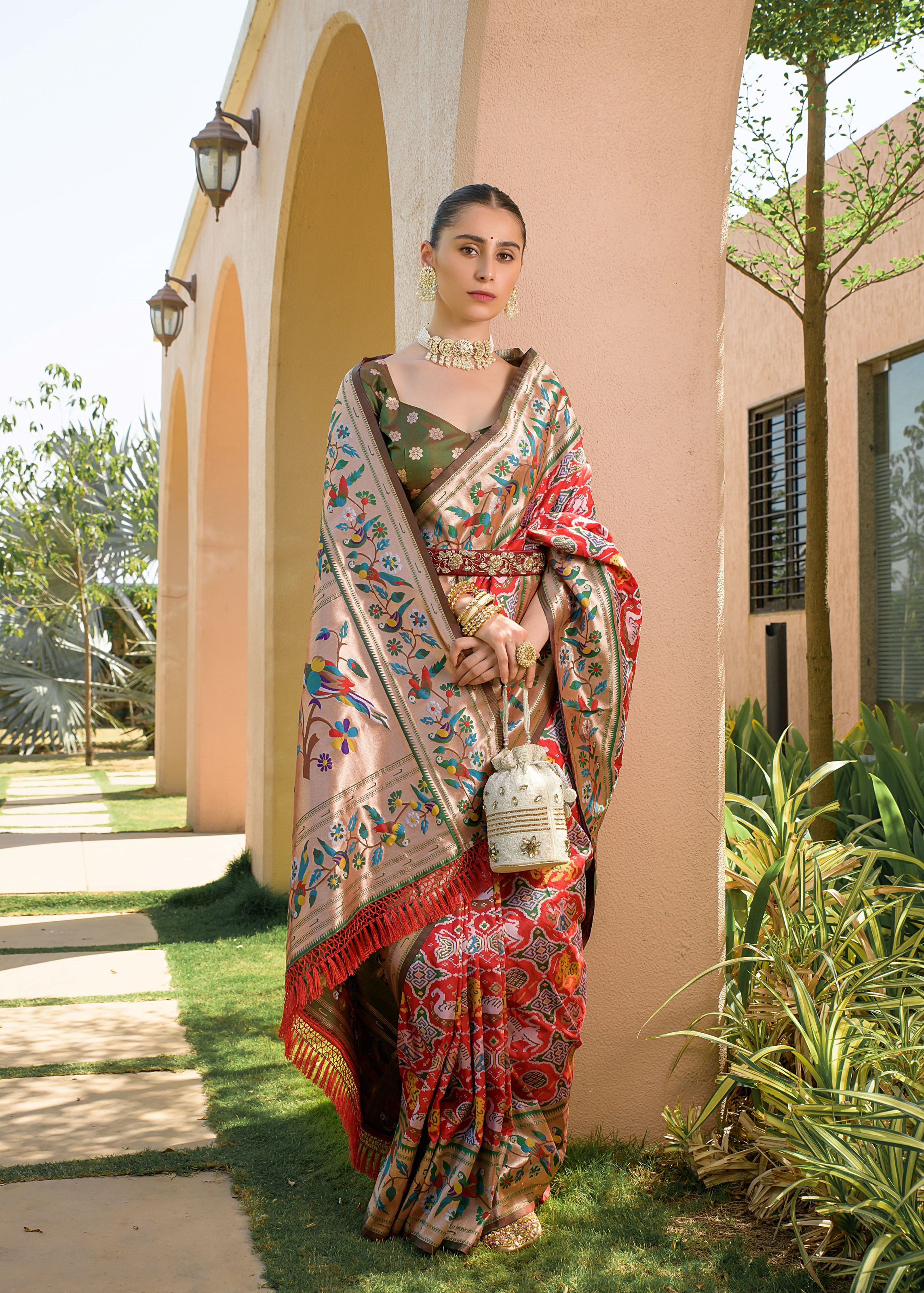 Red Paithani Silk Saree with Meenakari Zari and Pallu