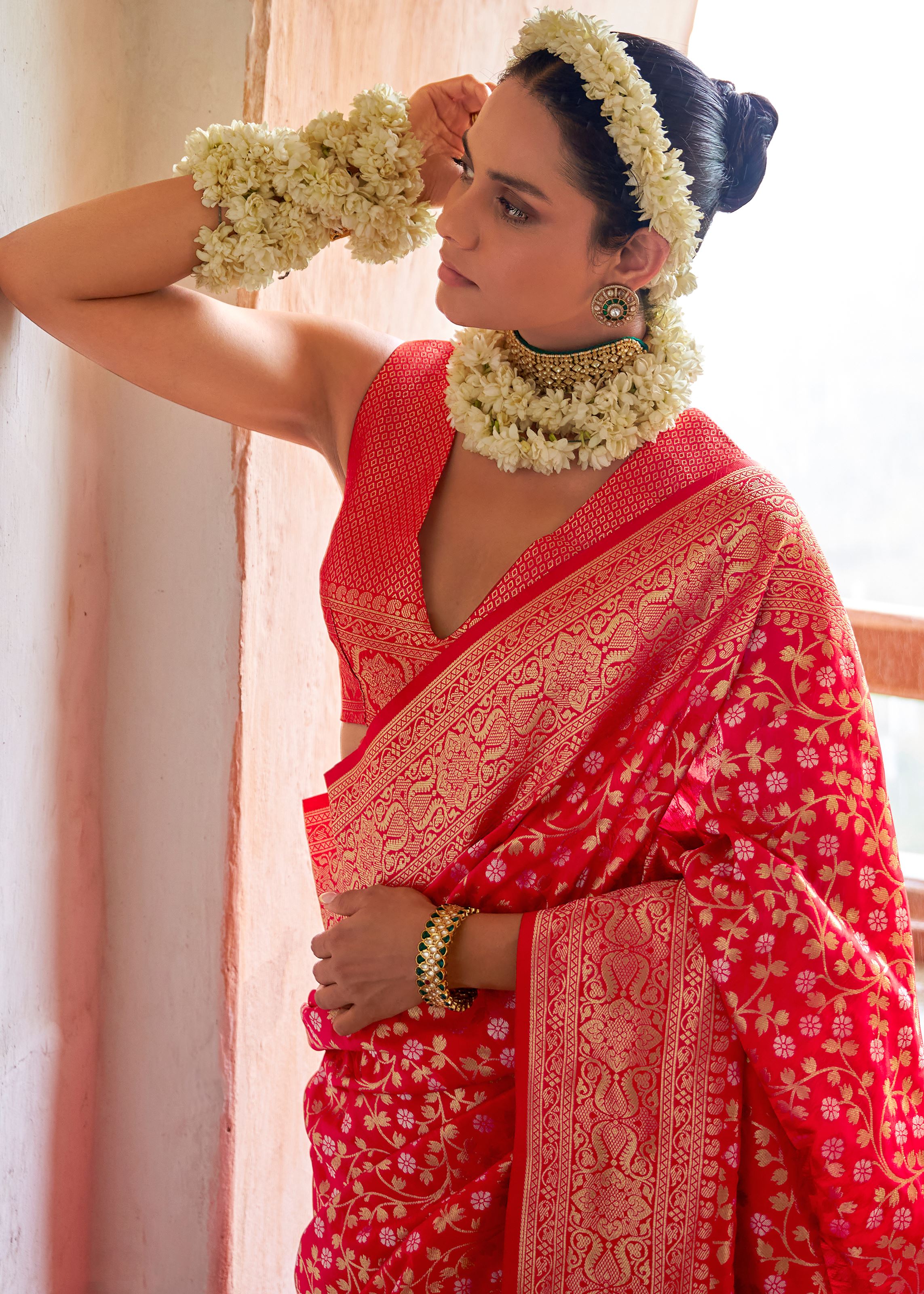 Red Pure Viscose Silk Saree With Jacquard Woven Work