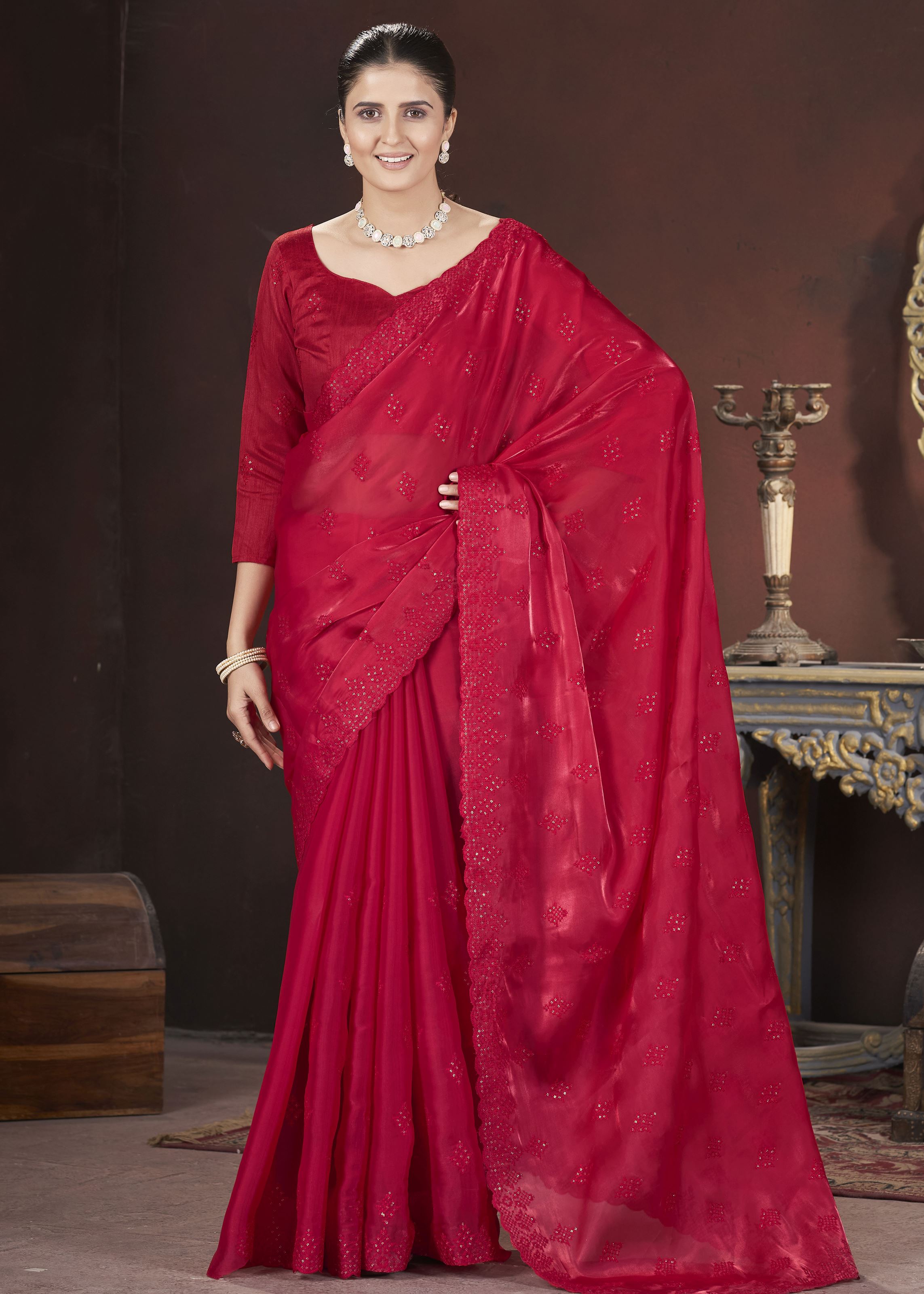 Red Stylish Jimmy Choo Ethnic Sequins Embroidered Saree