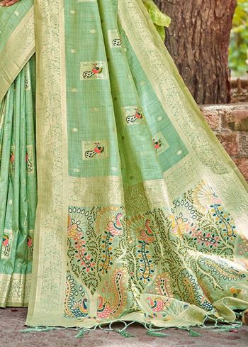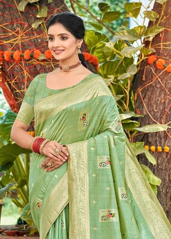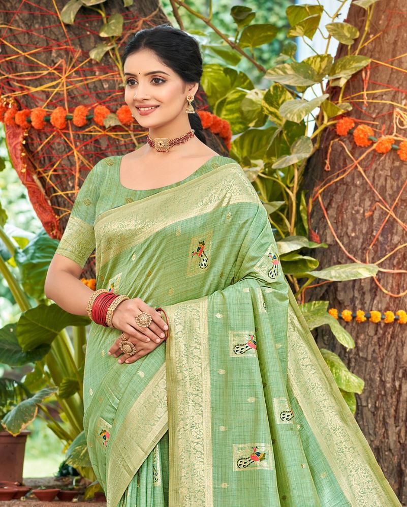 Regal Sea Green Assam Silk Meenakari Festival Saree