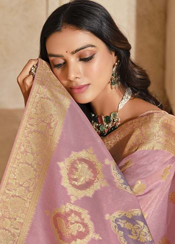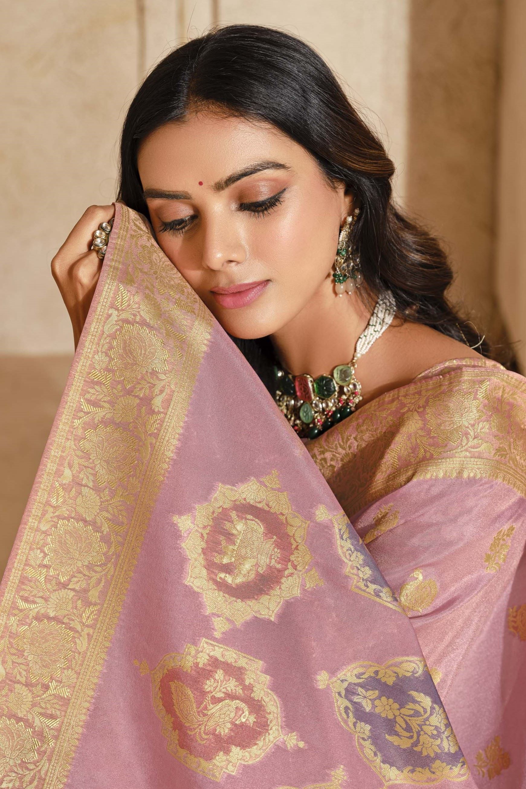 Rich And Heavy Woven Jari Designer Pink Partywear Silk Saree