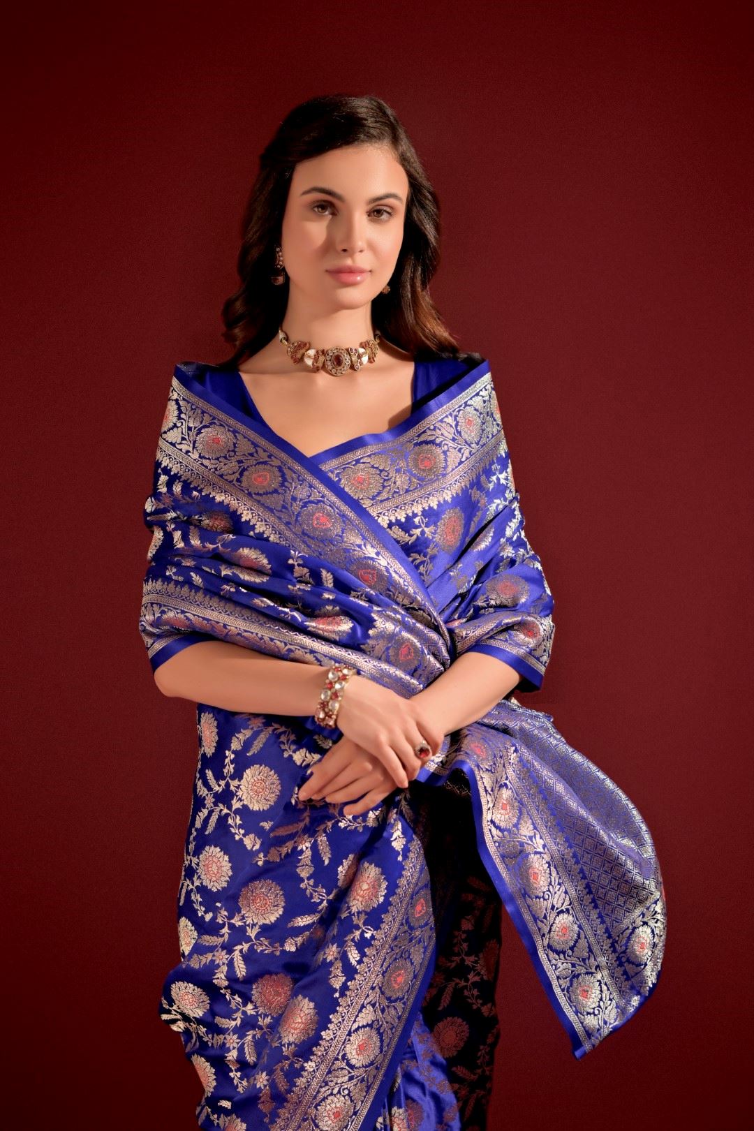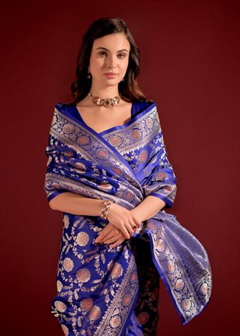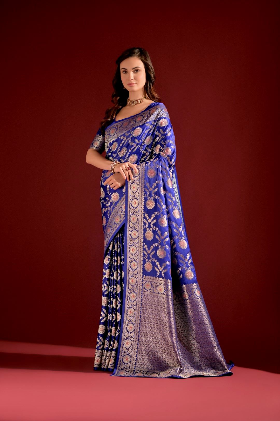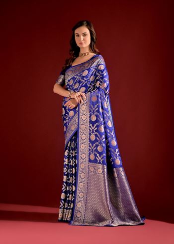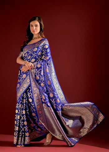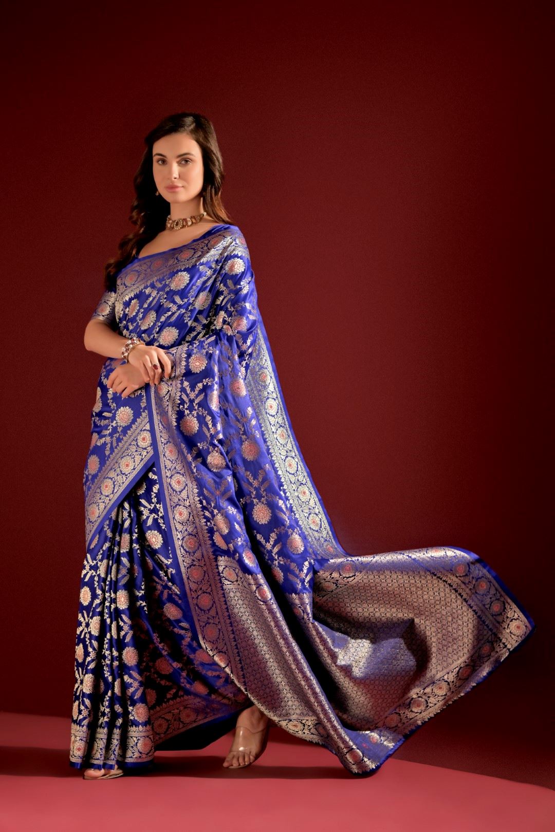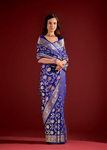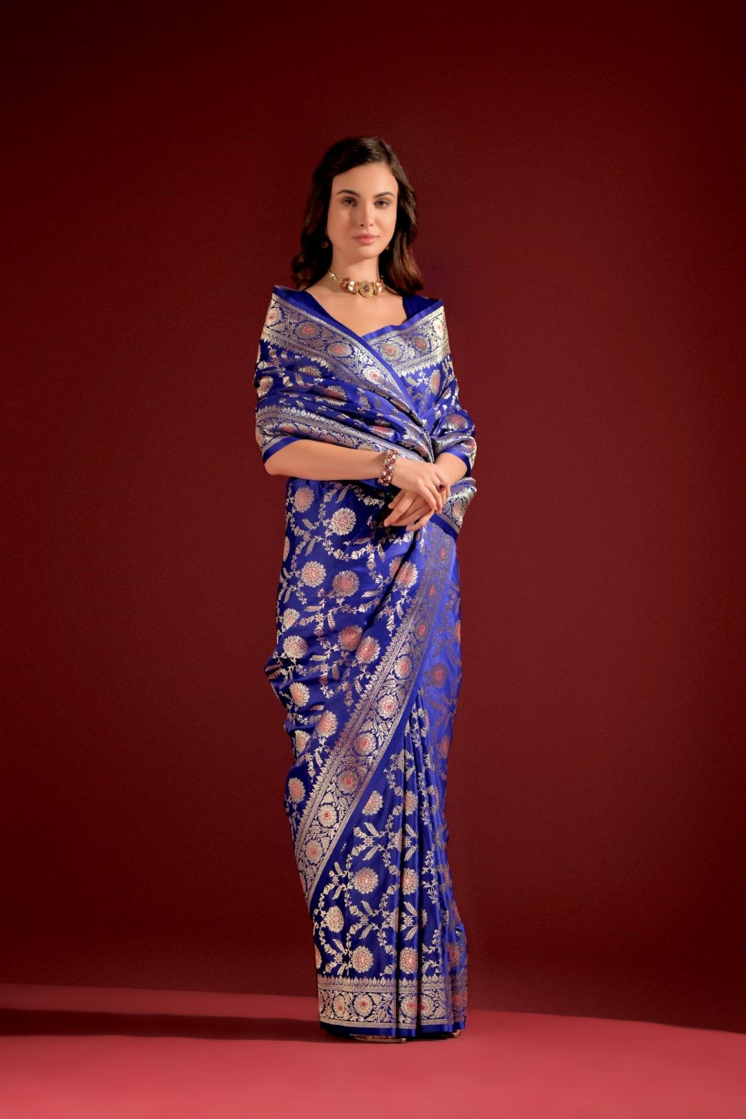 Royal-Blue Banarasi Silk Saree with Jal and Zari Pallu