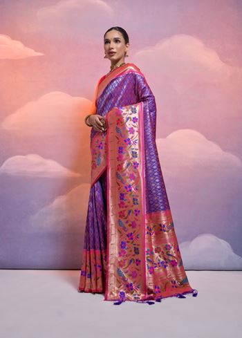Royal Blue Paithani Silk Saree with Meenakari Border and Zari Weaves