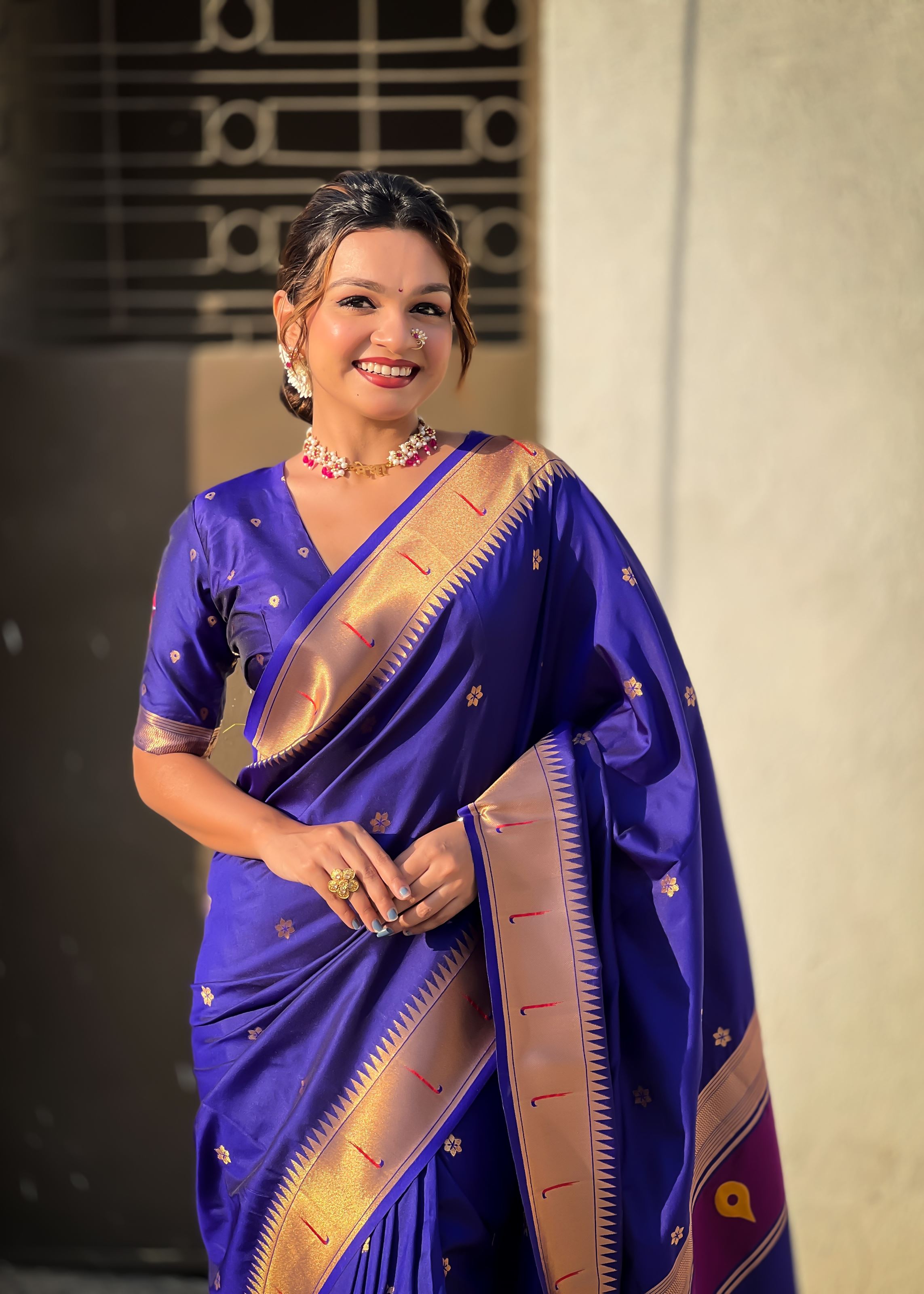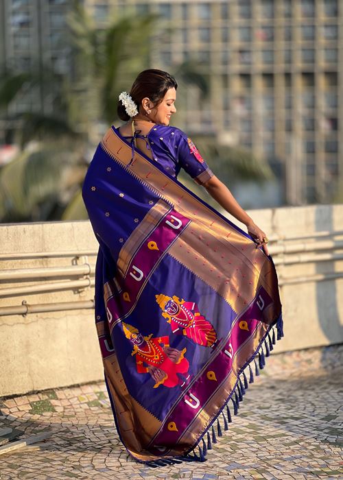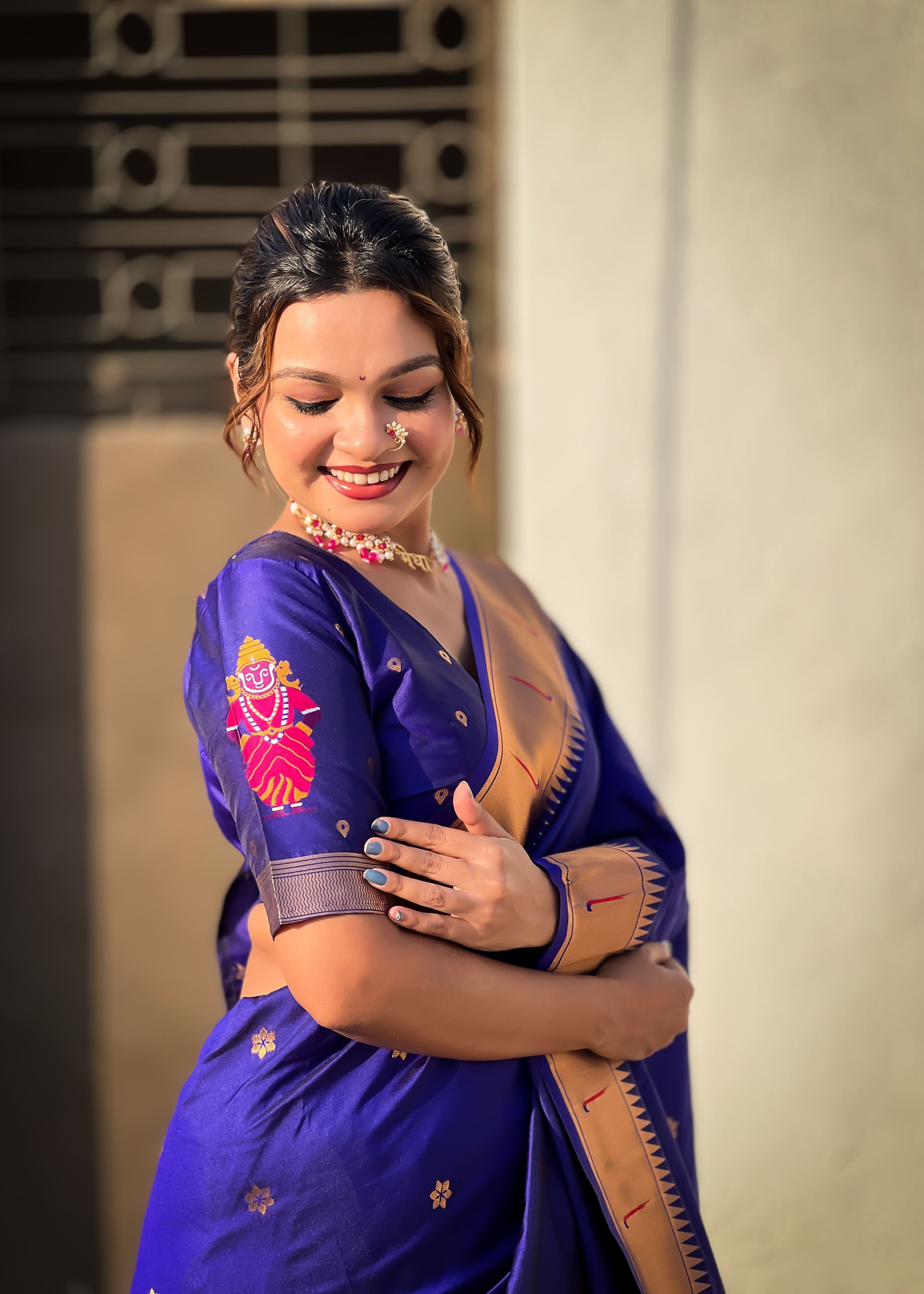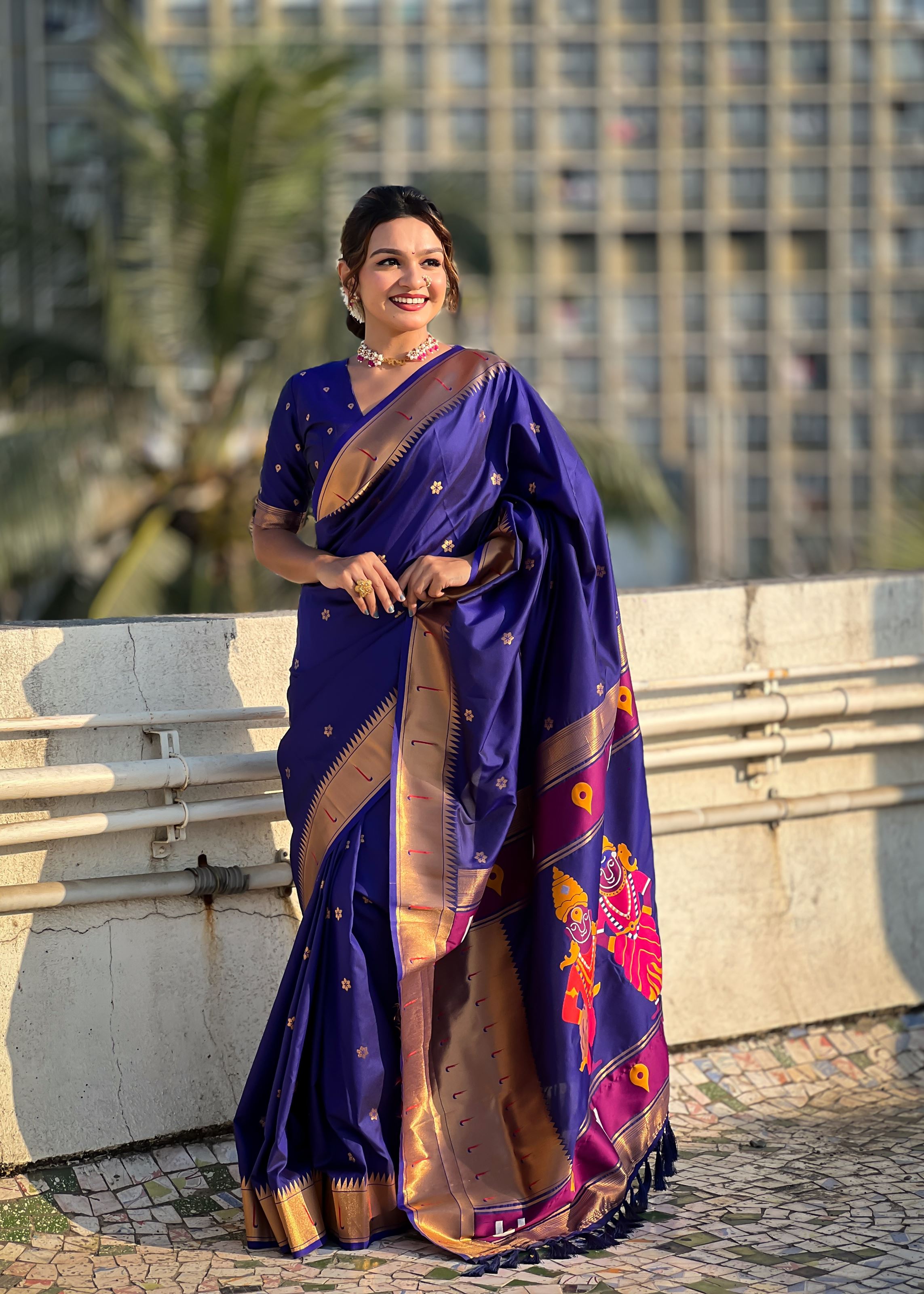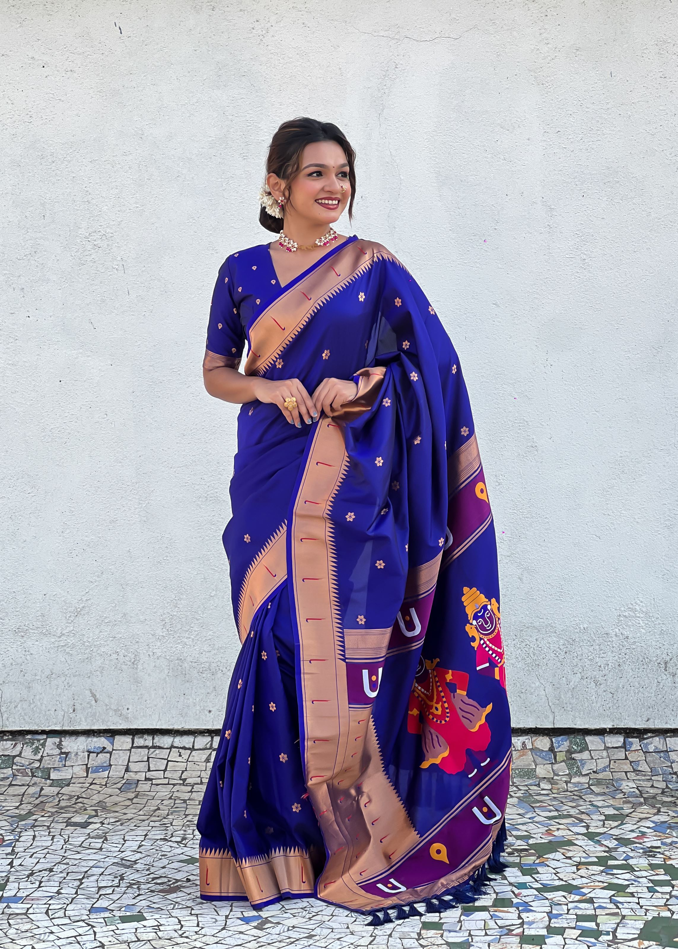Royal Blue Silk Blend Vitthala God Paithani Silk Saree