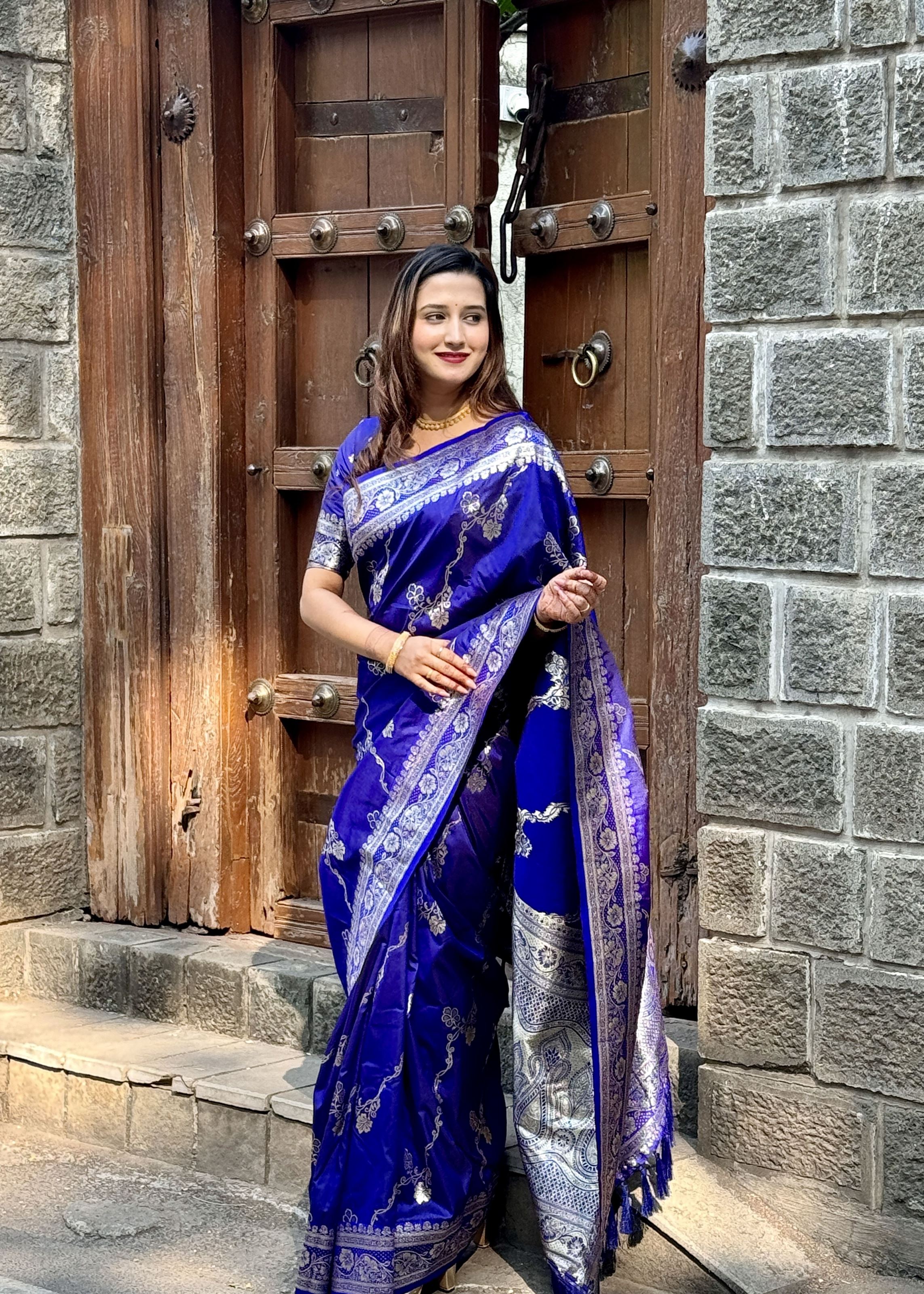 Royal Blue Woven Jacquard Jari Designer Banarasi Silk Festive Ceremonial Saree