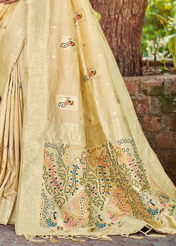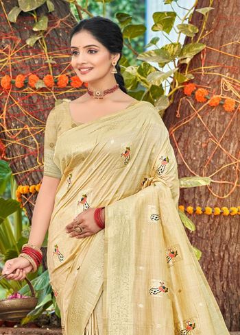 Exude timeless elegance with the Royal Cream Assam Silk Meenakari Festival Saree, a perfect addition to your festive and wedding wardrobe. Crafted from premium Assam silk, this saree drapes smoothly, offering a luxurious texture that combines comfort with sophistication. The soft cream hue radiates understated charm, making it ideal for cultural events, celebrations, and special occasions.