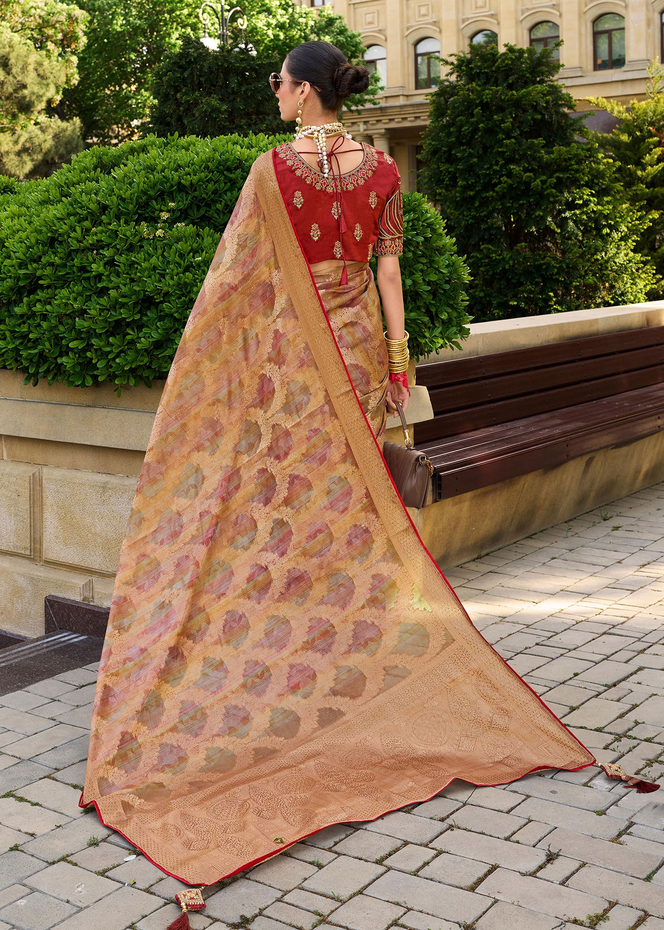 Rust Orange Jacquard Silk Woven Saree With Embroidered Blouse