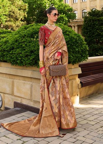 Elevate your ethnic wardrobe with the timeless beauty of the Rust Orange Jacquard Silk Woven Saree With Embroidered Blouse. Crafted from rich jacquard silk fabric, this saree exudes a royal charm with its smooth texture, graceful fall, and exquisite detailing. The warm rust orange hue symbolizes sophistication and festive elegance, making it an ideal choice for weddings, traditional ceremonies, and grand celebrations.