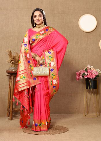 Rust Paithani Silk Woven Meenakari Paithani Designer Ethnic Heavy Looks Saree
