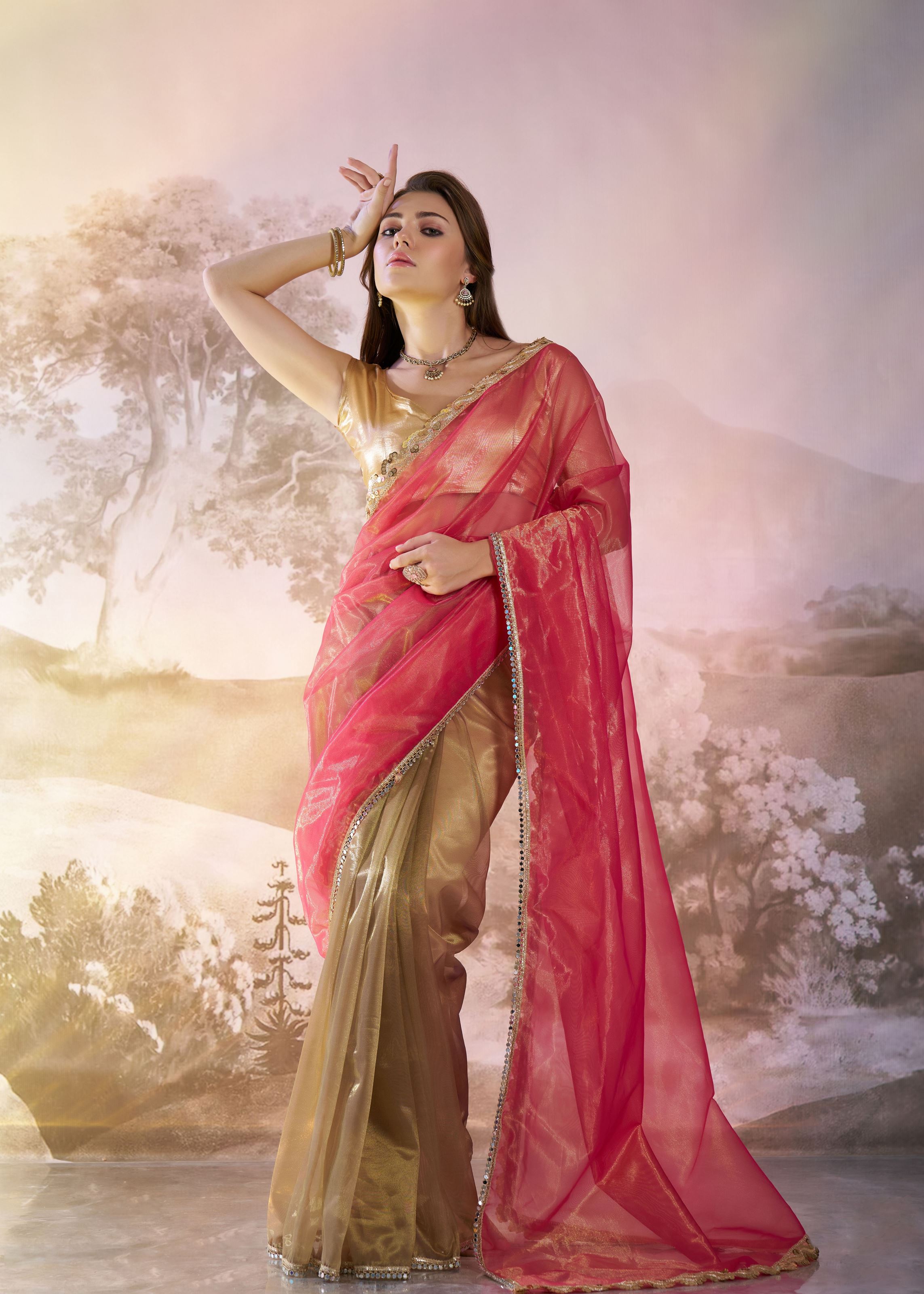 Rust Twill Net Solid Fancy Designer Bollywood Style Saree