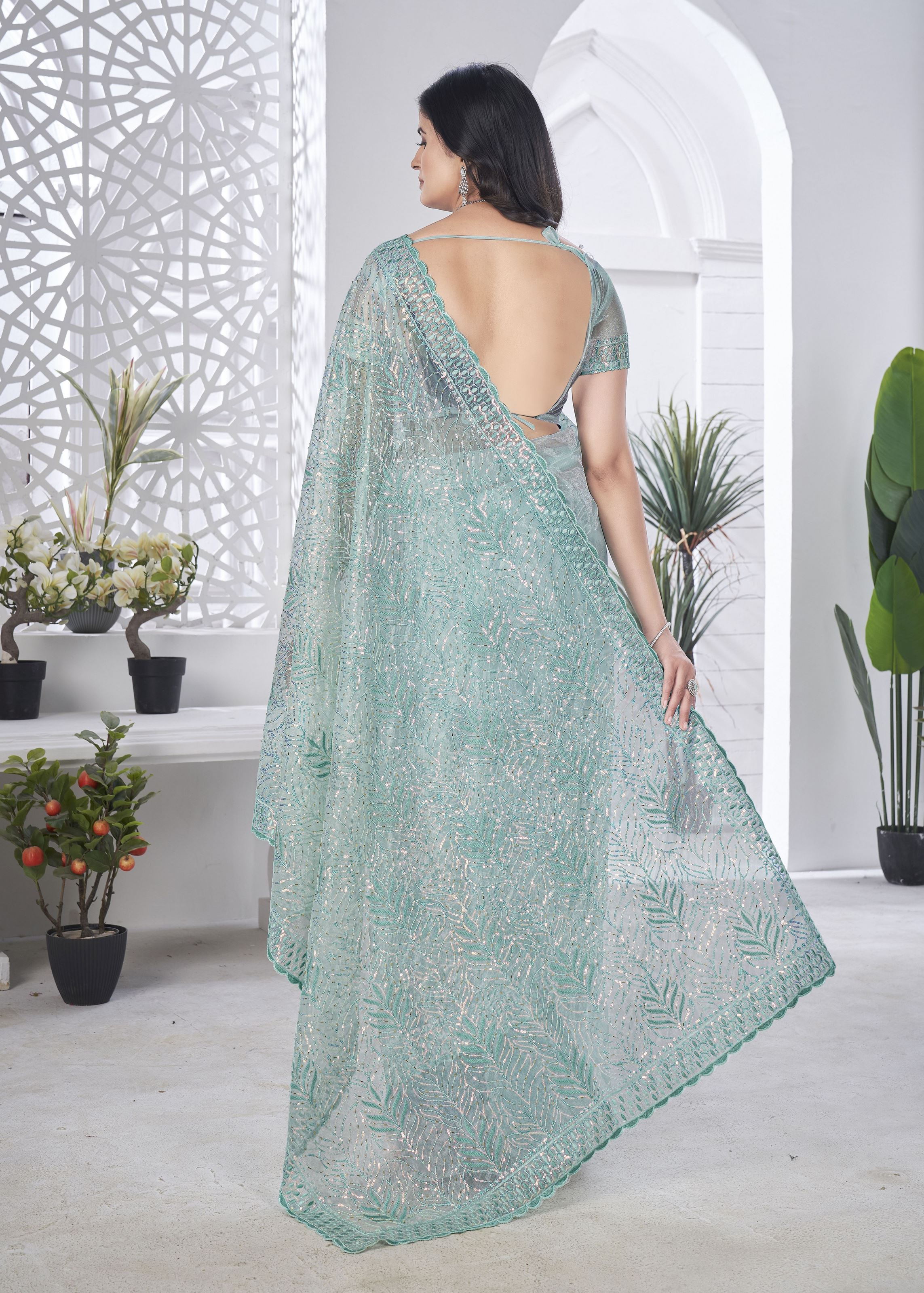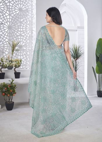 Sea Green Girlie Tissue Net Designer Embroidered Saree