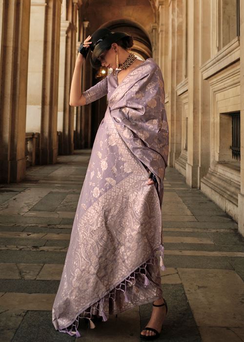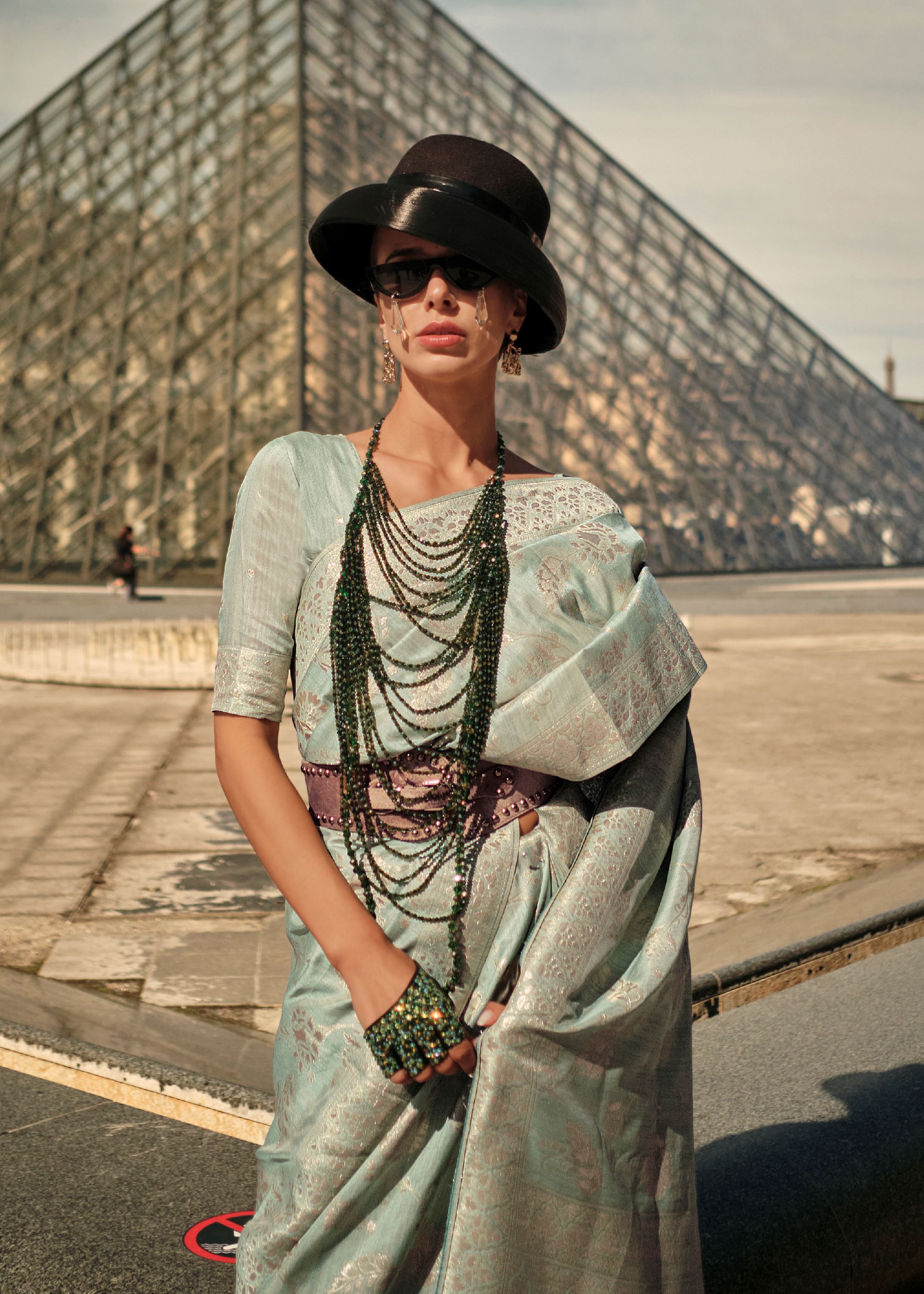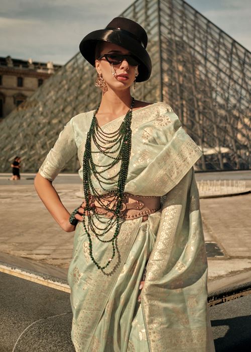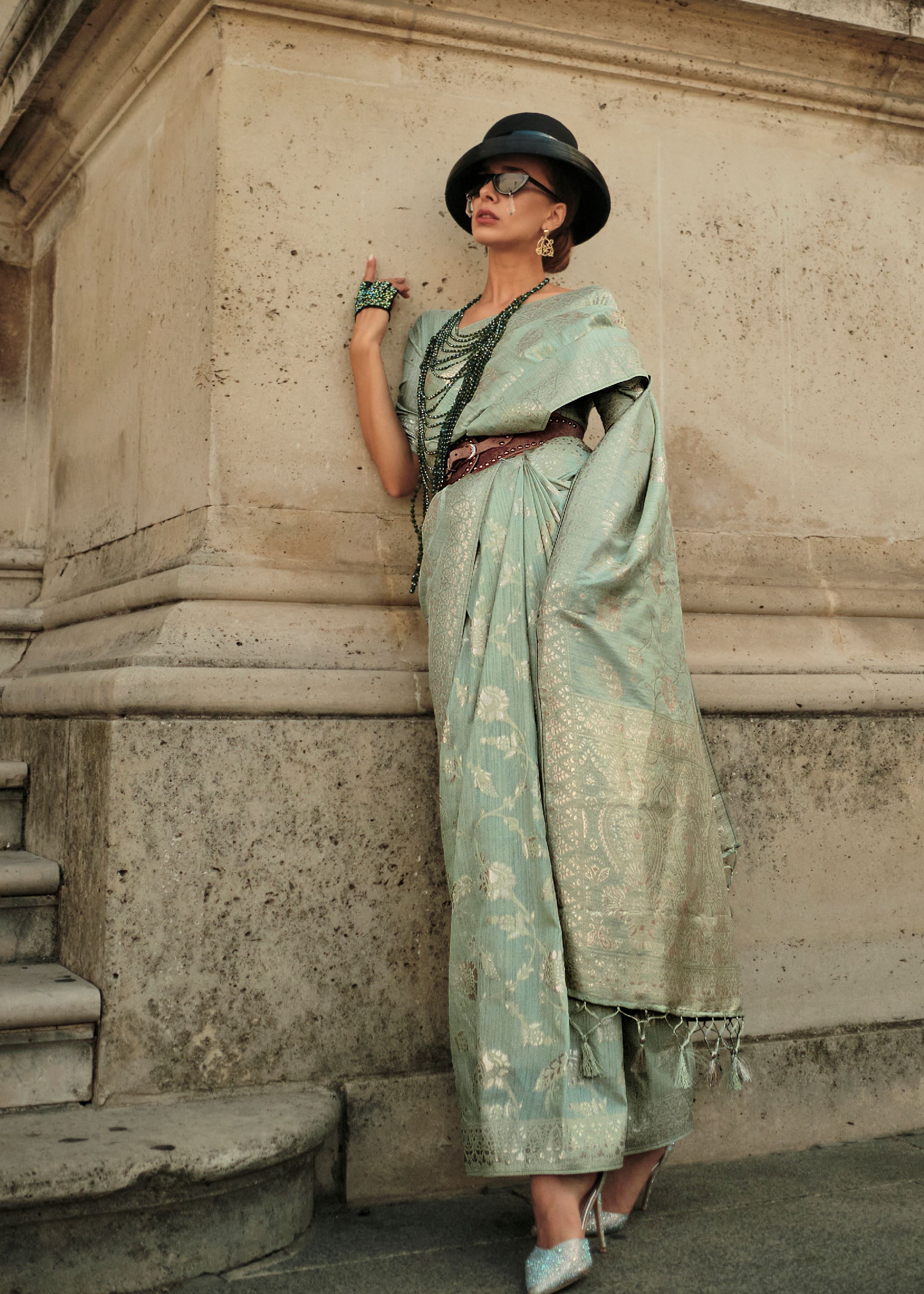 Sea Green Gota Zari Weaving Silk Saree With Woven Work