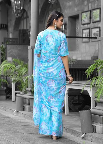 Bring refreshing elegance to your wardrobe with this Sea Green Imported Georgette Designer Digital Printed Saree, tailored in a graceful gown-style silhouette. Crafted from soft faux georgette, this ready-to-wear saree drapes beautifully, ensuring comfort with a flowing fall. The vibrant sea green shade enhances its modern charm, while the digital print adds a touch of contemporary artistry. Paired with a matching sea green faux georgette blouse, it creates a seamless and fashionable look.