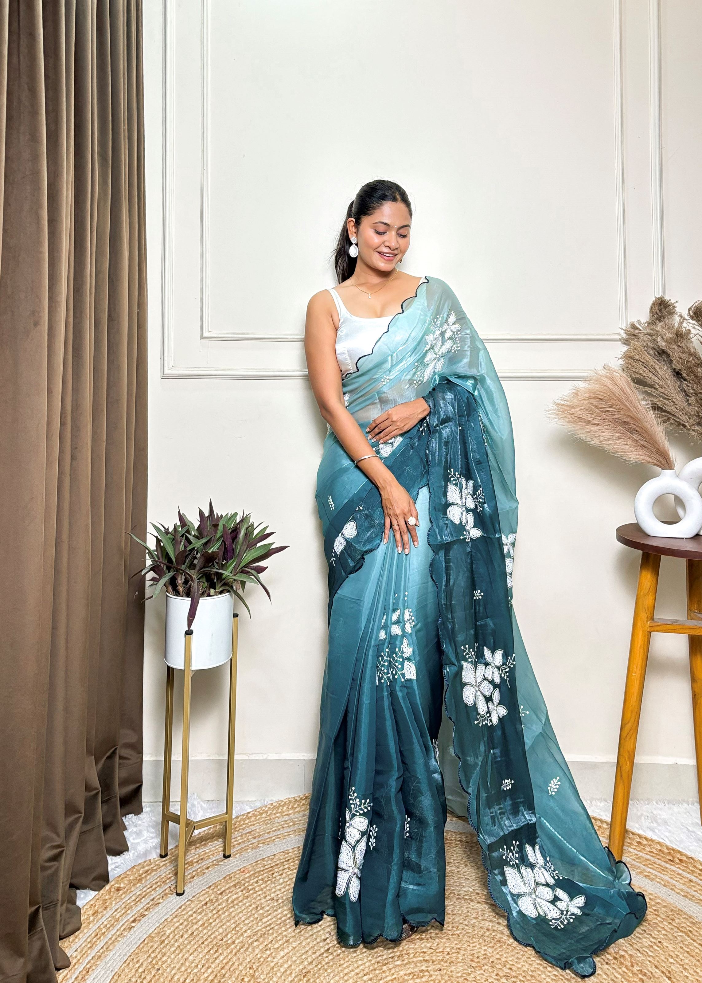 Sea Green Jimmy Choo Beautiful Sequins Embroidery Work Bollywood Saree