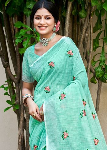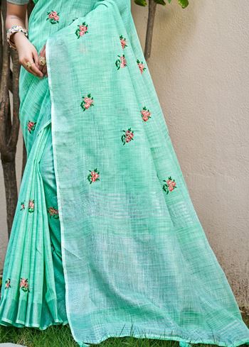 Sea Green Linen Saree With Effortless Style and Everyday Grace