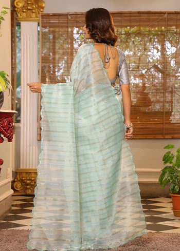 Sea Green Organza Partywear Sequins Work Arco Cut Work Saree