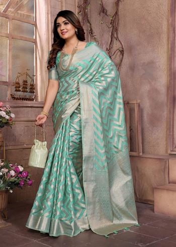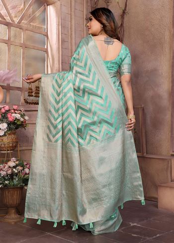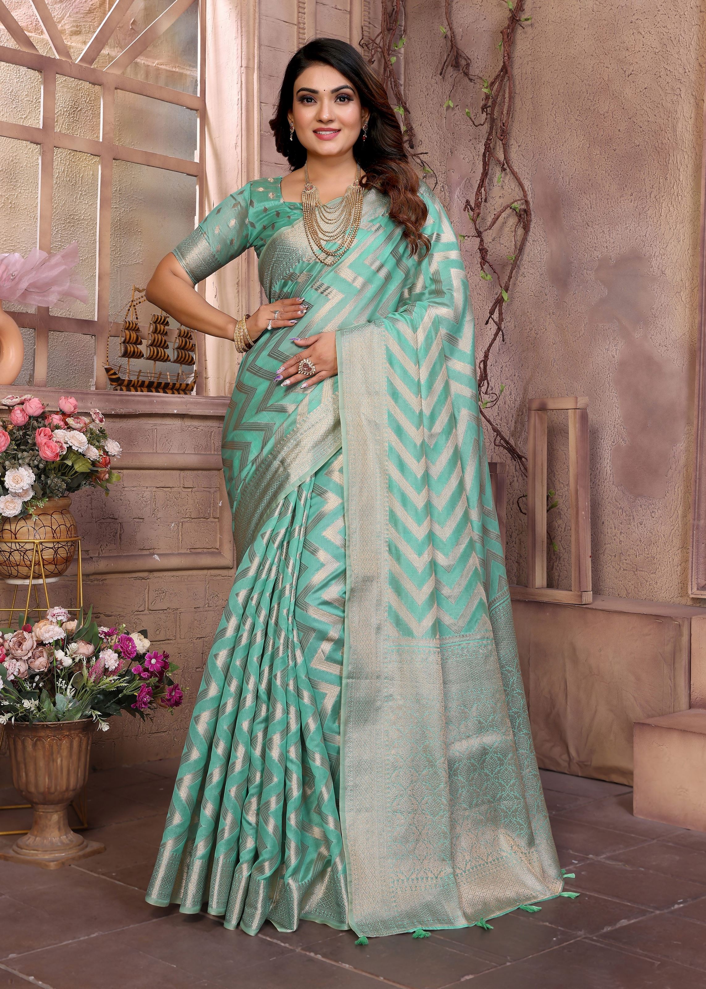 Sea Green Organza Woven Jari Designer Heavy Ceremonial Saree