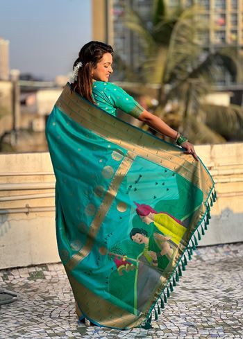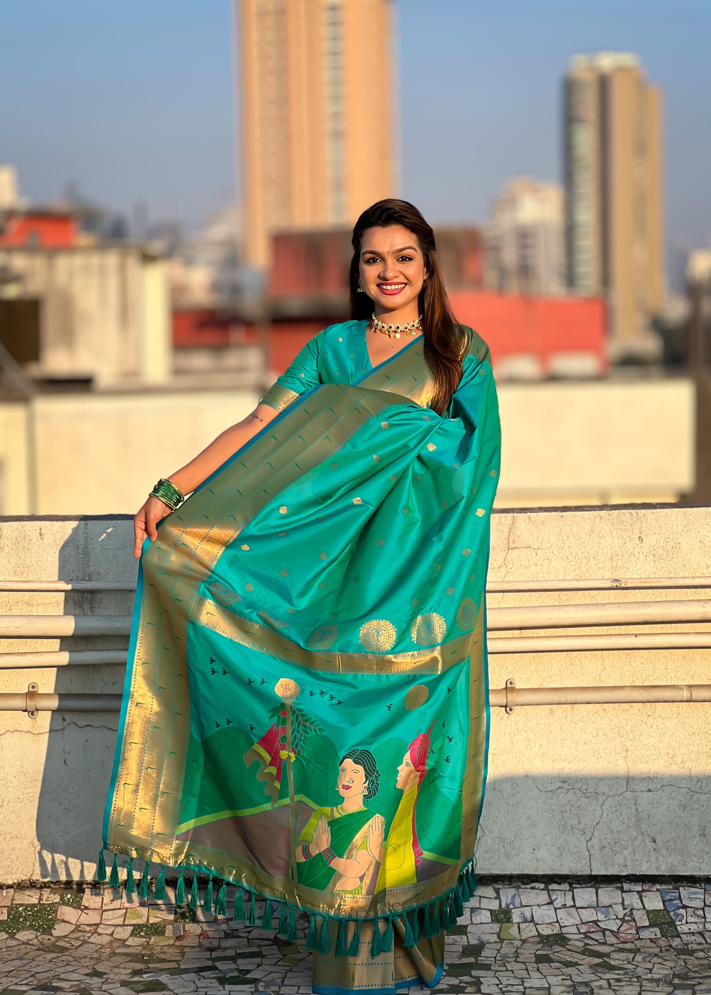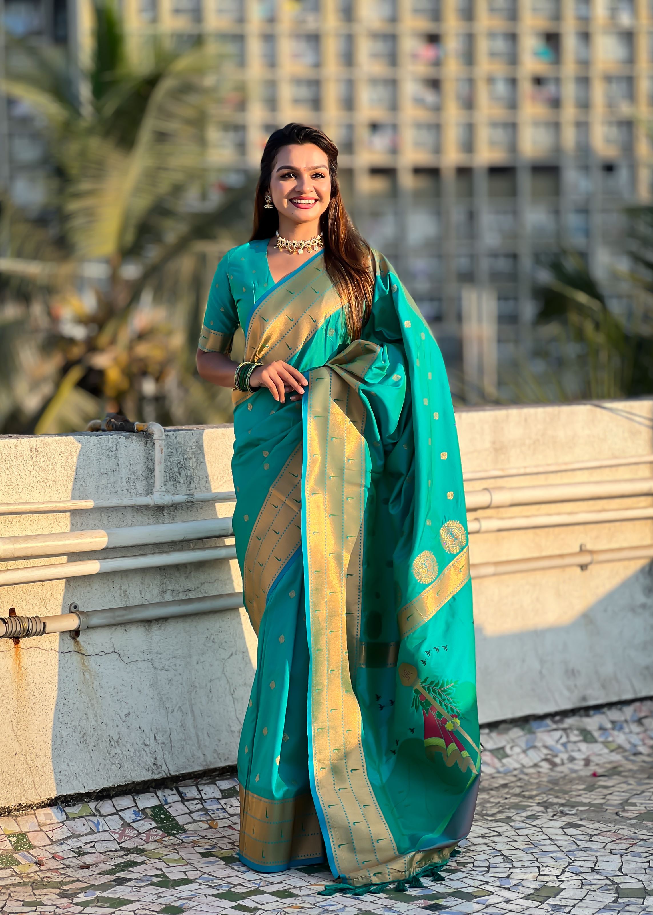 Sea Green Soft Silk Weaving Figure Pallu Designer Ceremonial Saree