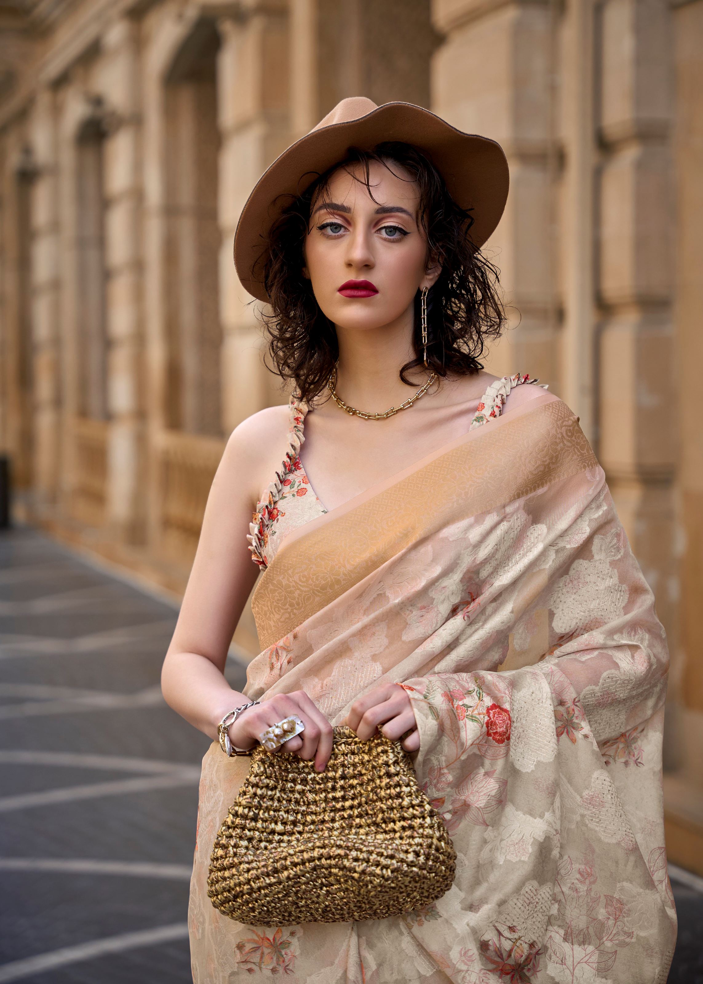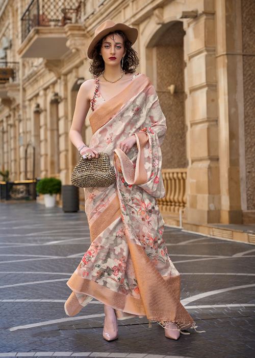 SeaShell Poly Brasso Handloom Silk Saree With Printed Poly Brasso Handloom Waving