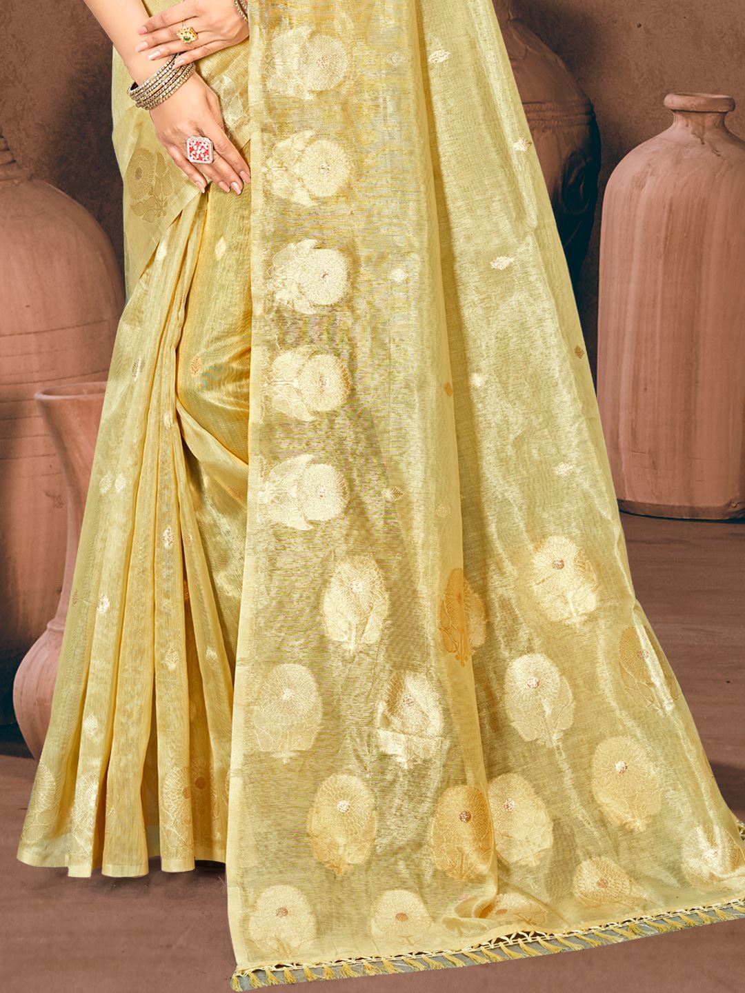 Radiate festive elegance with the Serene Golden Munga Kota Saree from Aethnofit Fashions, a creation that exudes luxury and tradition in perfect harmony. Crafted from authentic Munga Kota fabric, this saree is admired for its airy, lightweight texture and delicate sheen, ensuring comfort while keeping your look effortlessly regal. The rich golden hue symbolises celebration and grandeur, making it a perfect choice for weddings, receptions, and cultural festivities.