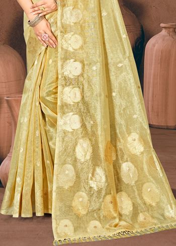 The matching golden Munga Kota blouse complements the saree’s opulent appeal, giving you the flexibility to style it in many ways. Pair it with antique gold jewellery for a royal ethnic look, or opt for pearl accents to soften its luxurious vibe. With its graceful drape and timeless charm, this saree transitions seamlessly from day events to evening celebrations.