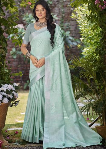 Elevate your festive wardrobe with the Shimmering Green Linen Festival Saree, a perfect blend of elegance and comfort. Crafted from premium linen fabric, this saree drapes beautifully, giving you a graceful silhouette for any celebration. Its soothing green hue adds a refreshing touch, making it ideal for festive gatherings, family functions, or cultural events.