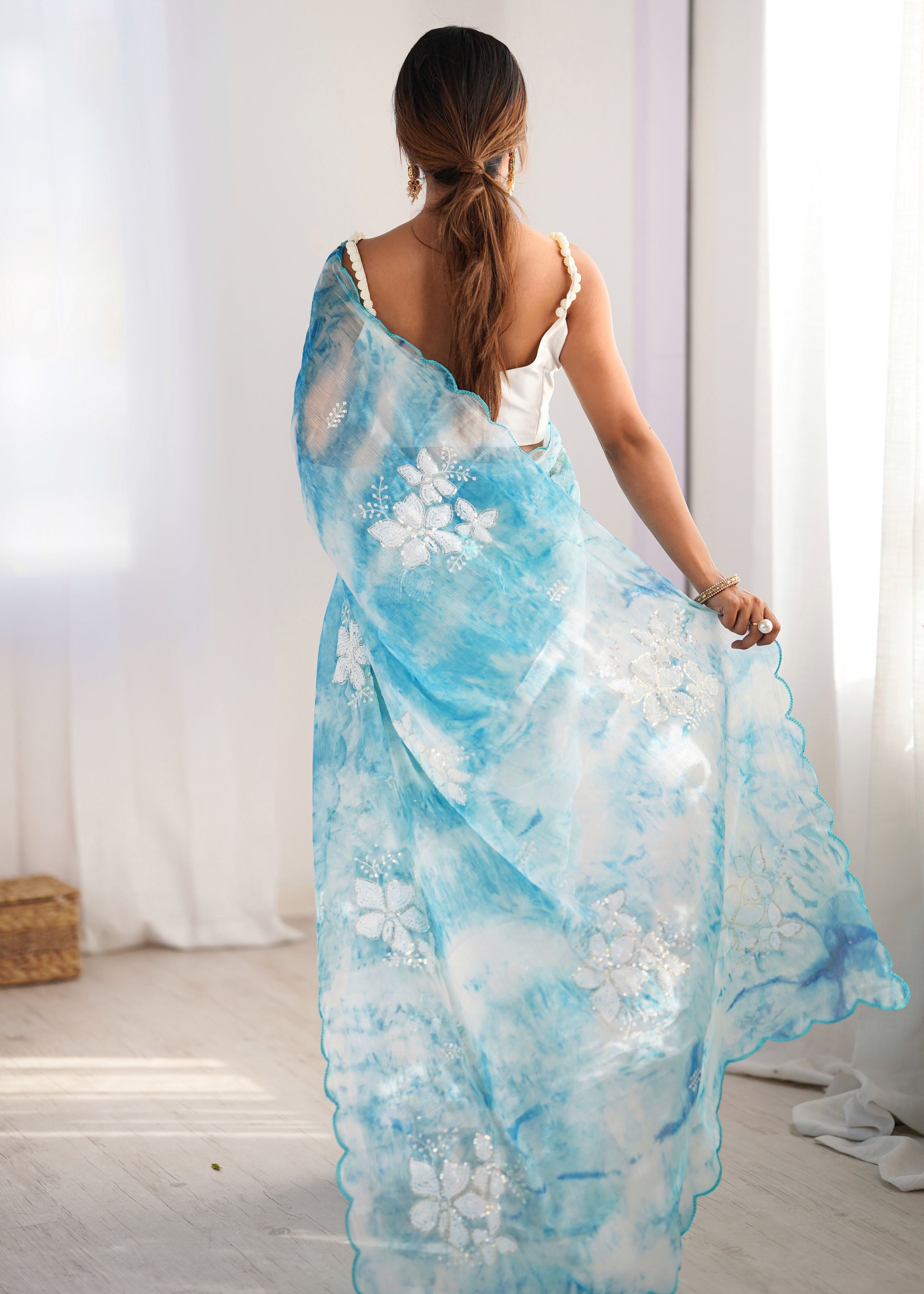Sky Blue Beautiful Jimmy Choo Sequins Embroidered Ethnic Girlie Saree