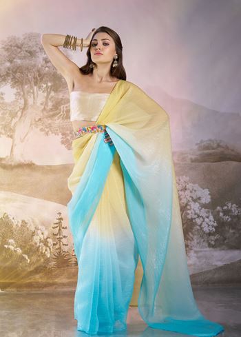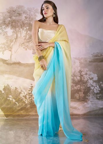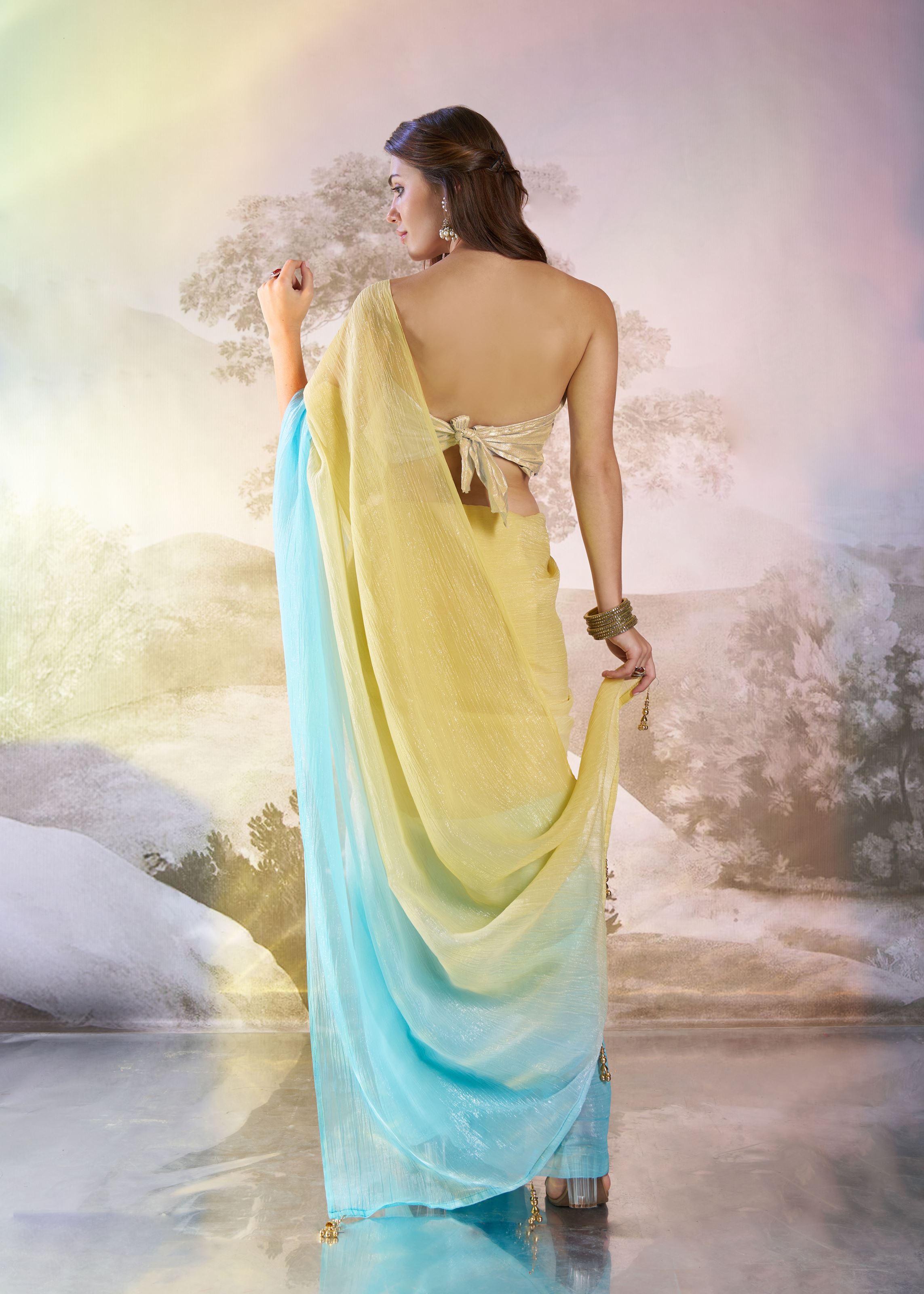 Sky Blue Glamorous Crunchy Chiffon Solid Designer Partywear Saree