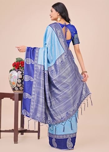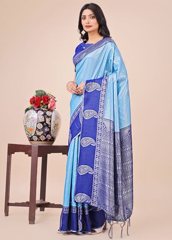 Sky Blue Lichi Silk Woven Designer Festive Graceful Saree