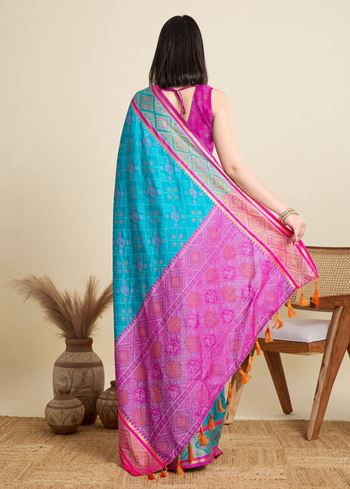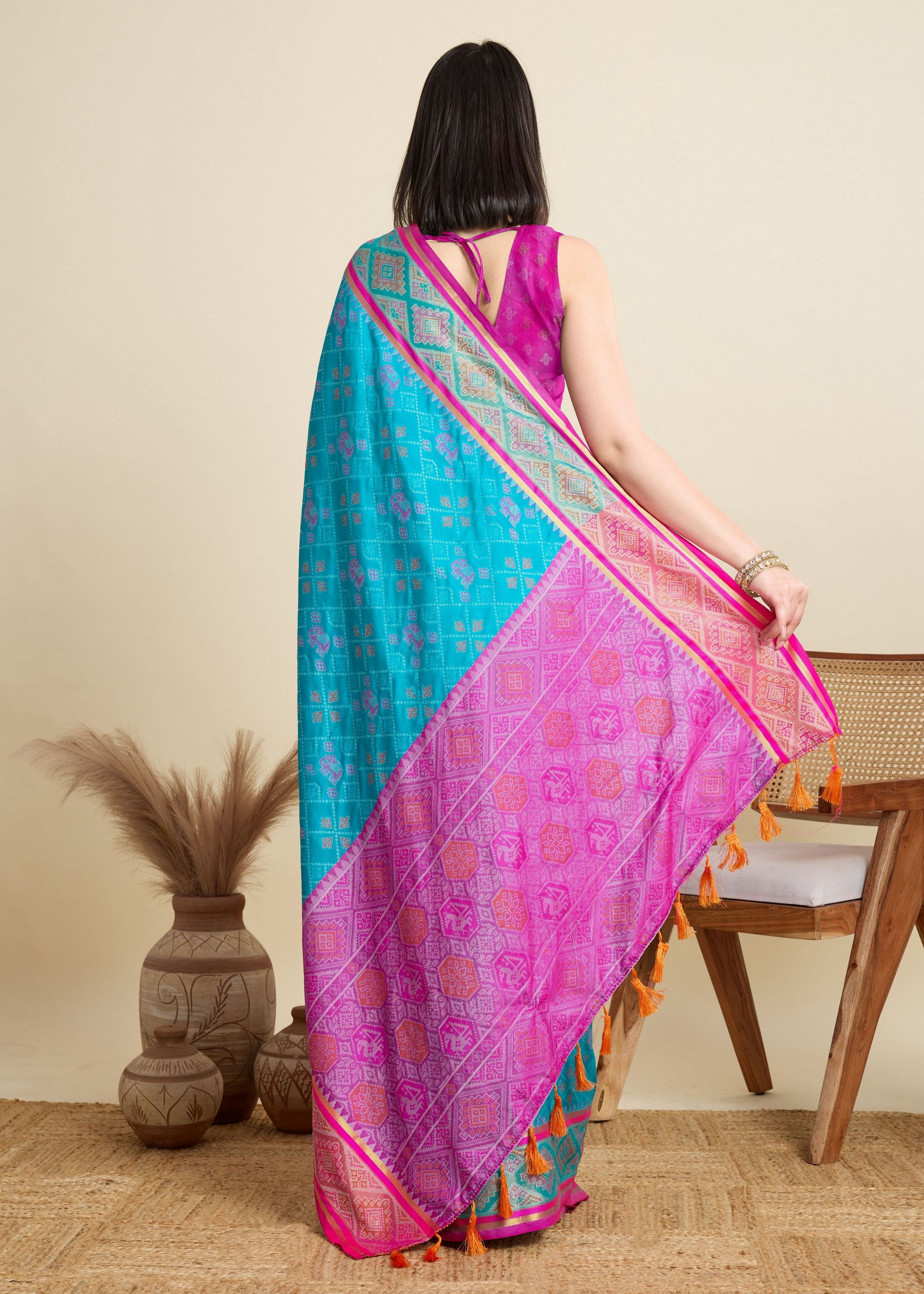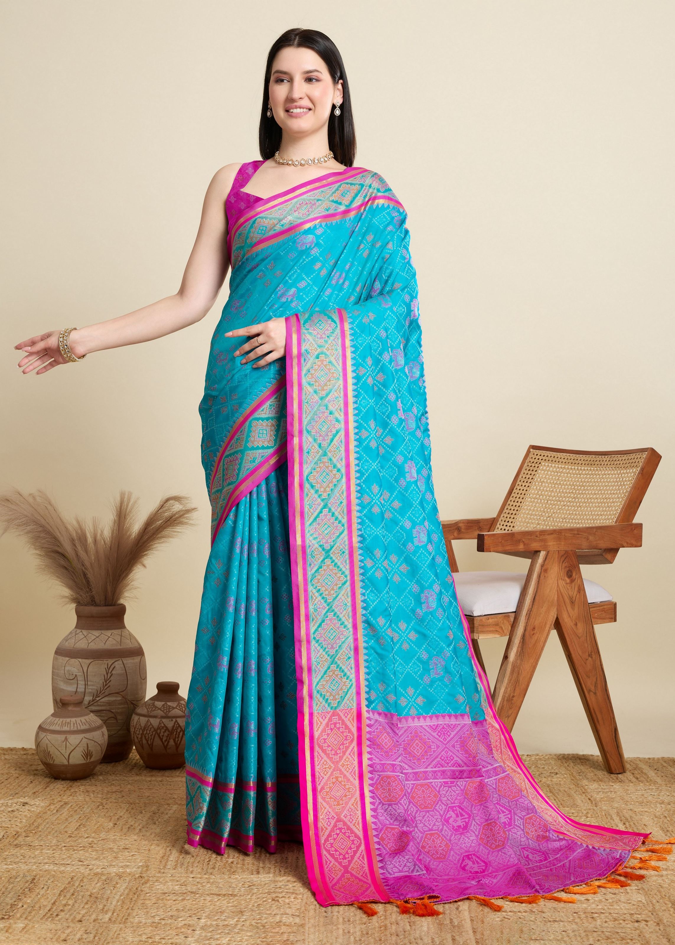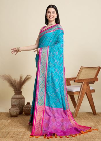Sky Blue Patola Silk Woven Meenakari Designer Partywear Saree