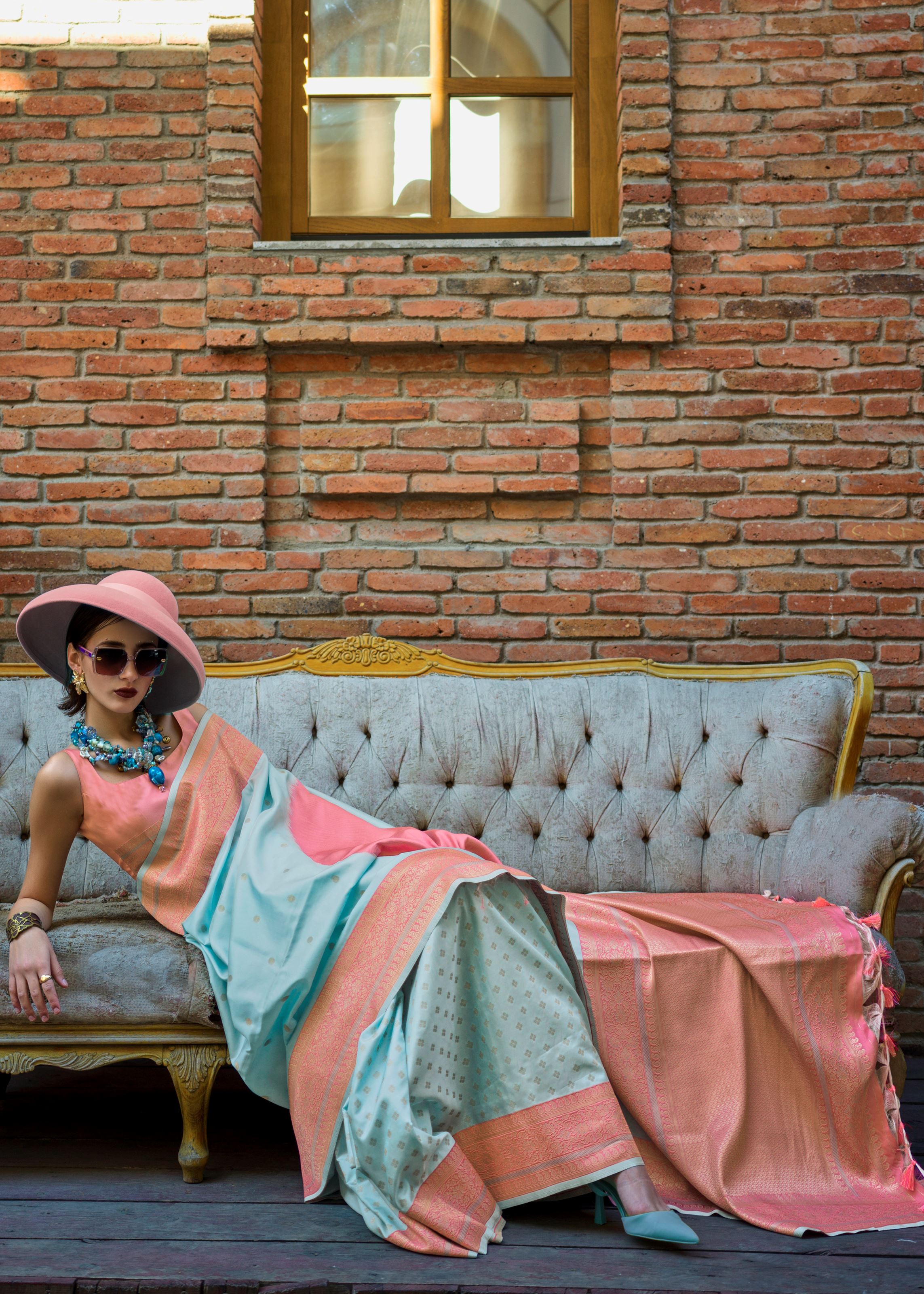 Sky Blue Soft Silk Saree with Jacquard Woven Work