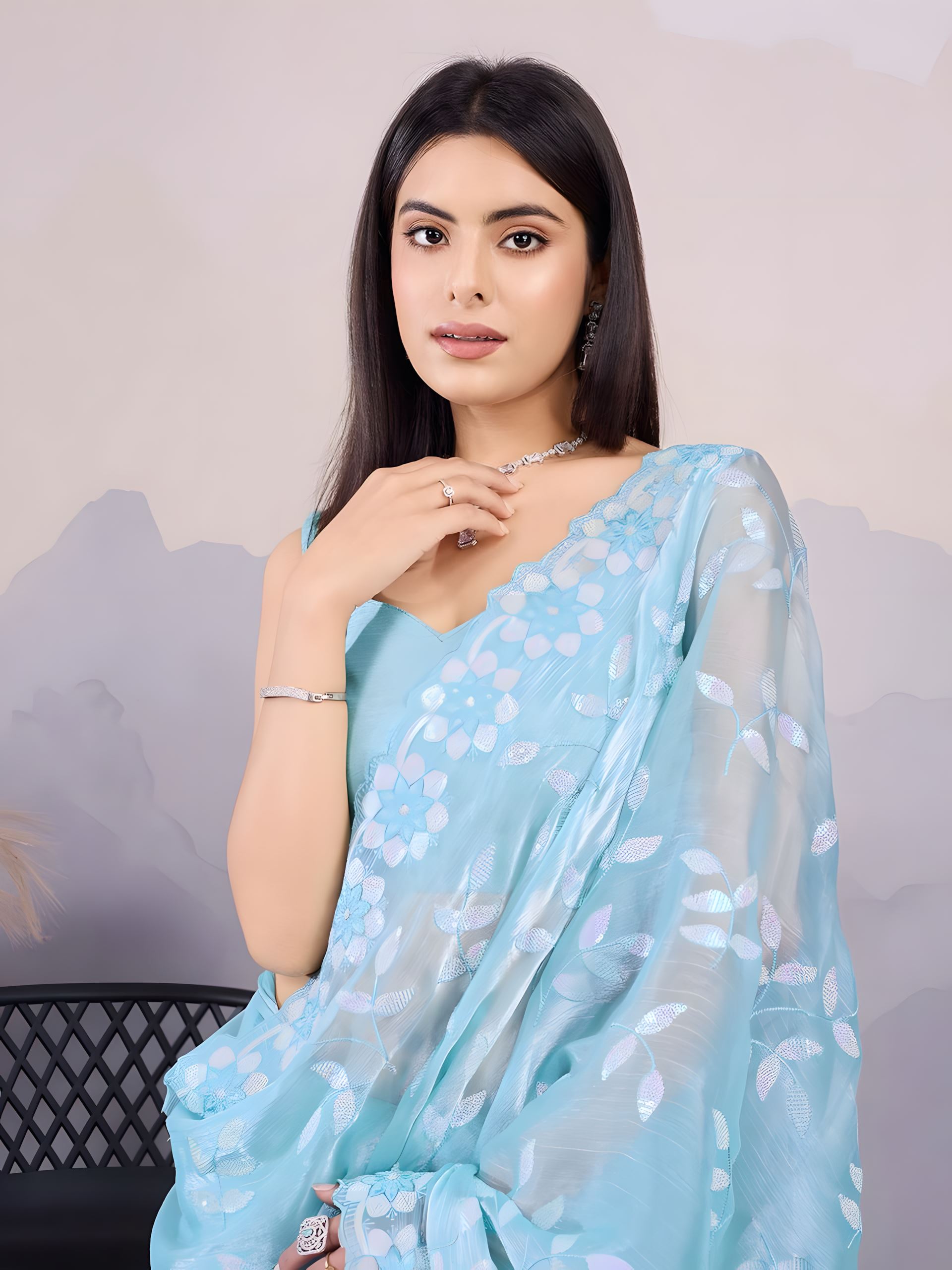 Perfect for women who admire contemporary finesse blended with ethnic charm, this saree pairs beautifully with silver or pearl accessories.