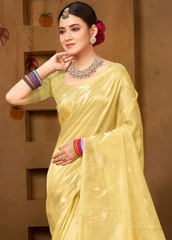 Stylish Yellow Munga kota Festival Saree for Women