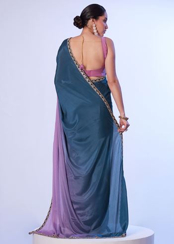 Teal Blue Beautiful Chinon Solid Designer Bollywood Party Saree