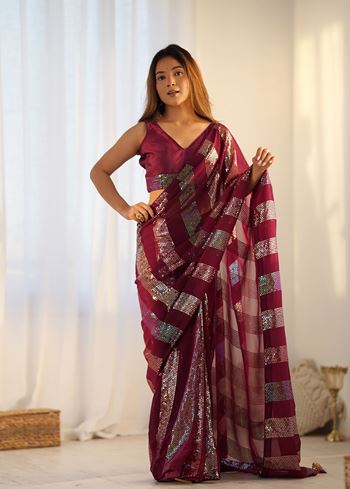 Designed for modern fashion enthusiasts, this designer saree combines traditional Indian craftsmanship with contemporary trends. The lightweight fabric drapes effortlessly, ensuring comfort without compromising on elegance. Whether you are attending a party or a grand cultural function, this saree guarantees a standout presence.