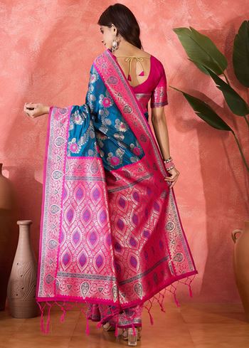 Ideal for festive celebrations and grand events, this saree can be styled with dazzling earrings, a statement necklace, and elegant footwear to complete your regal look. Its rich fabric and intricate detailing make it a must-have for women who appreciate timeless beauty with a modern touch.Add this Teal Blue Silk Woven Partywear Saree to your collection and experience the perfect blend of heritage and contemporary sophistication.