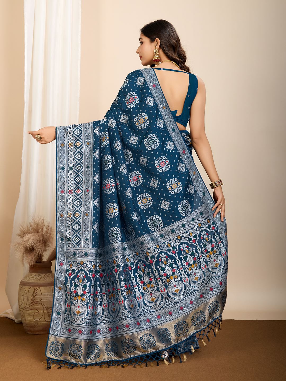 Teal Blue Soft Silk Woven Meenakari Designer Ceremonial Partwear Saree