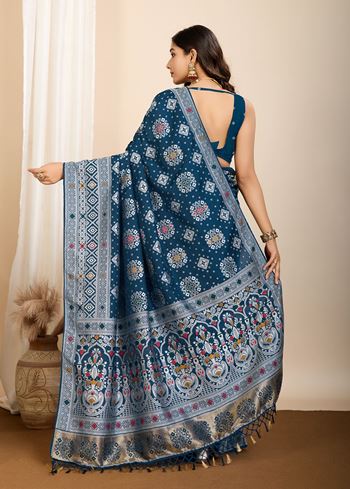 The sheen of soft silk combined with the grandeur of Meenakari weaving creates a versatile ethnic piece that is as fashionable as it is traditional. Whether styled with heavy gold jewelry for a royal appearance or with minimal accessories for a chic modern touch, this saree adapts to your personal style effortlessly.The Teal Blue Soft Silk Meenakari Saree is more than just attire – it’s a statement of grace and heritage, designed for women who wish to leave a lasting impression. A must-have for your ethnic collection, it blends cultural richness with contemporary elegance.