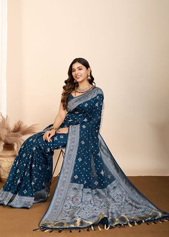 Teal Blue Soft Silk Woven Meenakari Designer Ethnic Saree