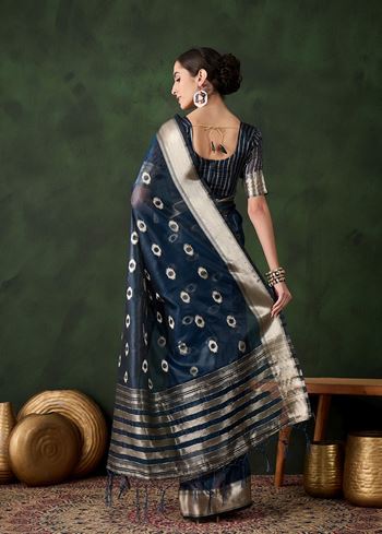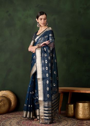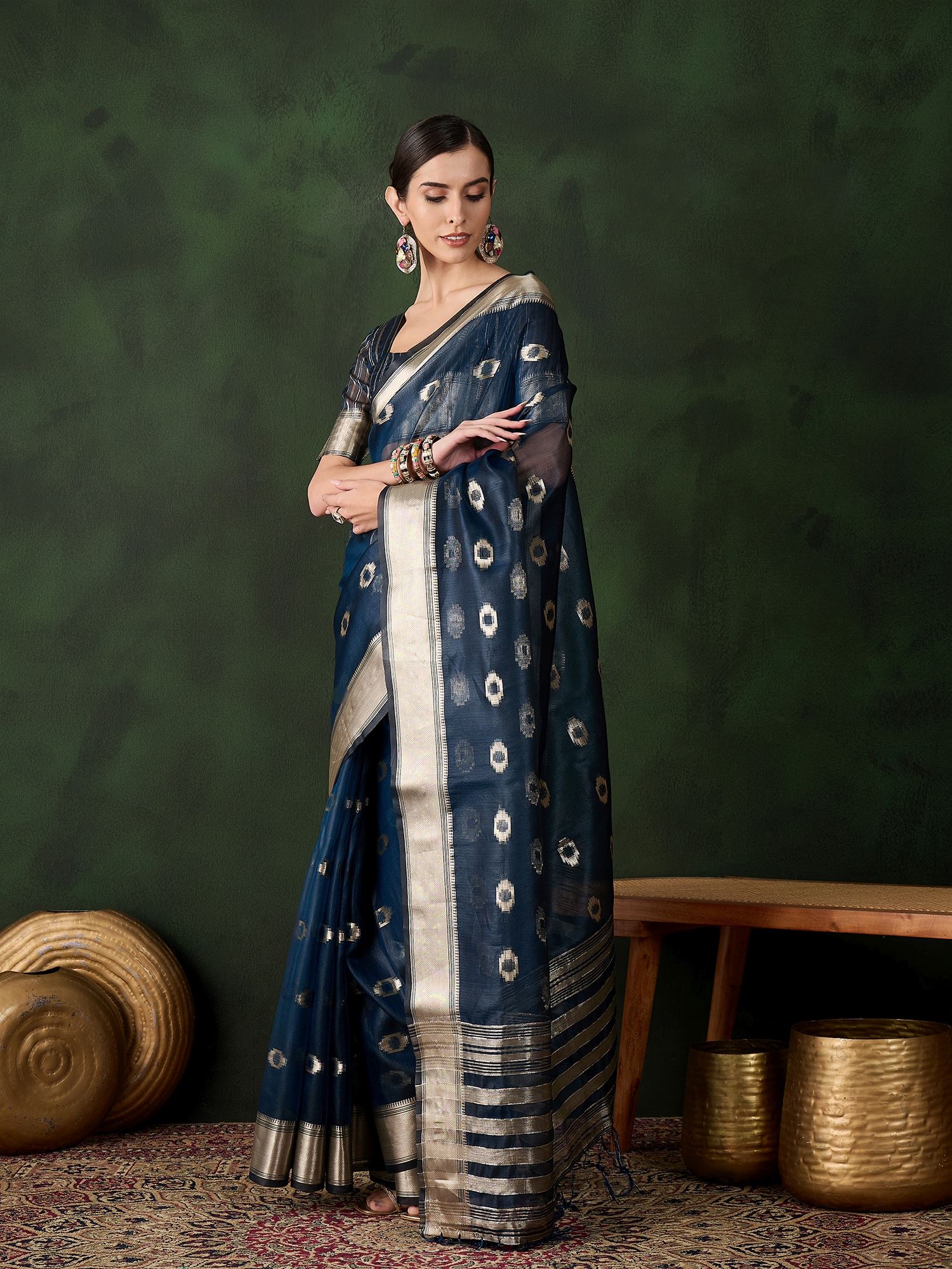 Teal Khadi Organza Woven Jacquard Designer Graceful Traditional Saree