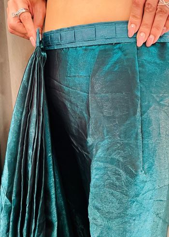 Elevate your ethnic style with this Teal Ready To Wear Fendy Satin Saree, a perfect blend of glamour and convenience. Made from premium art silk, the fabric carries a rich satin finish that flows gracefully, giving you a sophisticated and modern appeal. The ready-to-wear format ensures effortless draping, making it ideal for women who want to save time while still looking elegant and stylish.