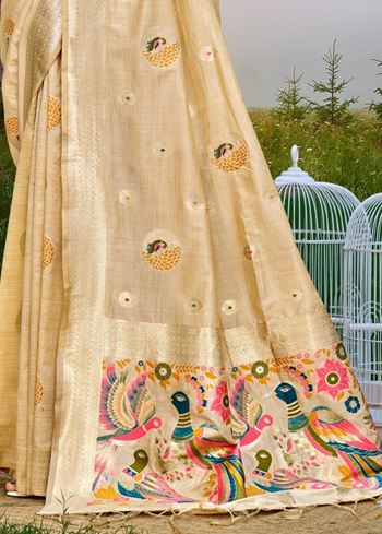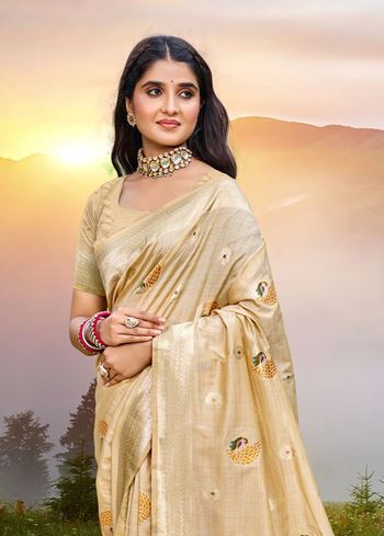 Timeless Cream Assam Silk Meenakari Festival Saree