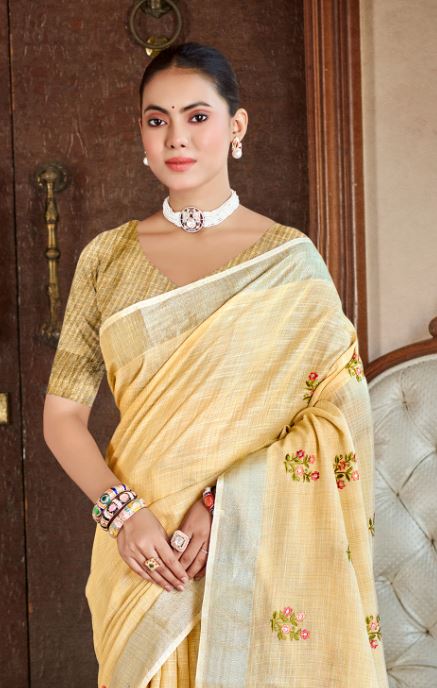 The matching mustard linen blouse completes the ensemble, allowing you to experiment with both subtle and bold accessories. Its minimalistic yet refined appeal makes it versatile enough for day or evening wear. Whether paired with delicate gold jewellery for a classic look or layered with statement pieces for a contemporary twist, this saree is a wardrobe essential for every saree lover.Ideal for those looking to buy Indian sarees online, discover designer styles, or explore premium party wear sarees, this piece stands out for its timeless grace. As part of our best saree collection featuring silk, cotton, bridal, and more, it comes with worldwide shipping. Customers in the USA and other regions can enjoy quick delivery and authentic ethnic fashion from Aethnofit Fashions.