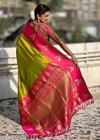 Traditional Woven Balaji Tilak Designer Woven Soft Silk Mahendi Saree