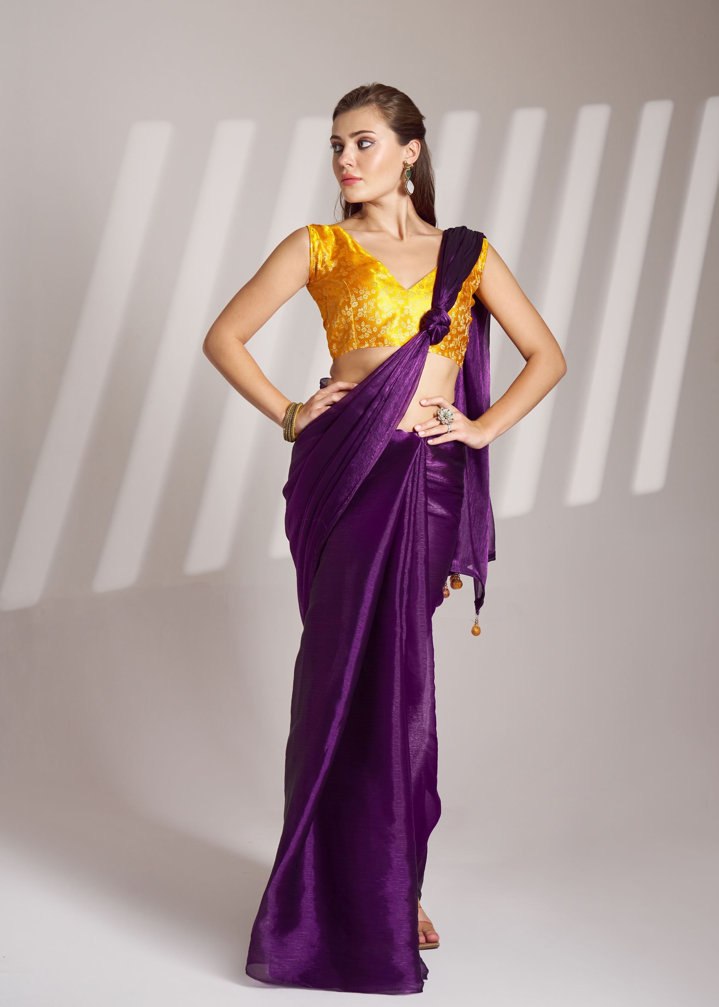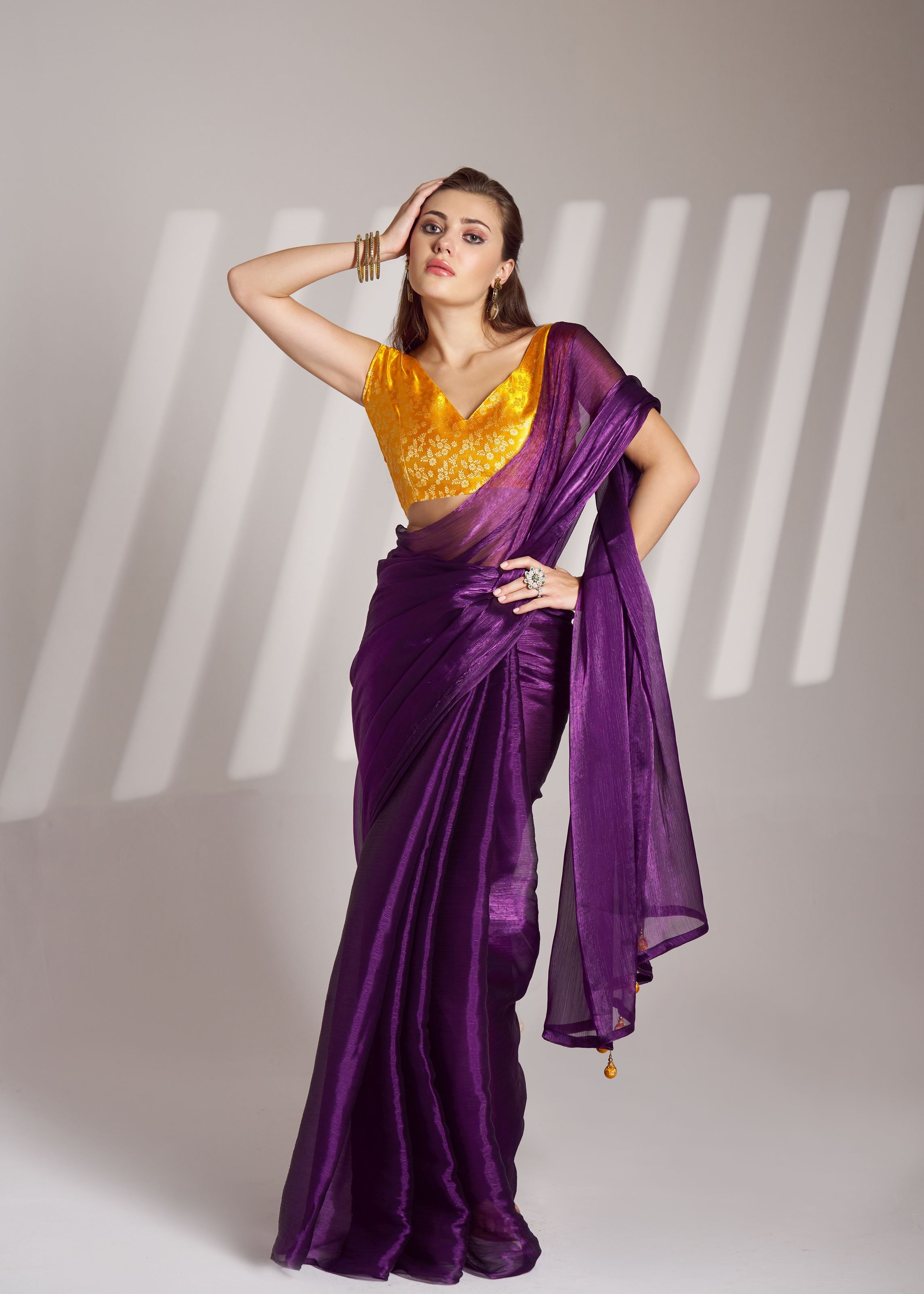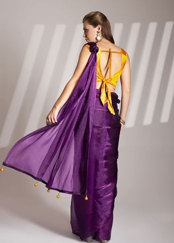 Violet Glamorous Burberry Organza Solid Designer Partywear Saree