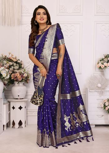 It comes with a matching violet silk blend blouse, completing the ensemble with harmony and elegance. Pair it with traditional gold jewelry, kundan sets, or even diamond accents to elevate its festive charm. Lightweight yet luxurious, this saree ensures both comfort and grandeur, allowing you to shine effortlessly throughout the celebration.Perfect for weddings, pujas, and cultural festivities, this saree is not just attire but a statement of heritage, beauty, and timeless fashion.