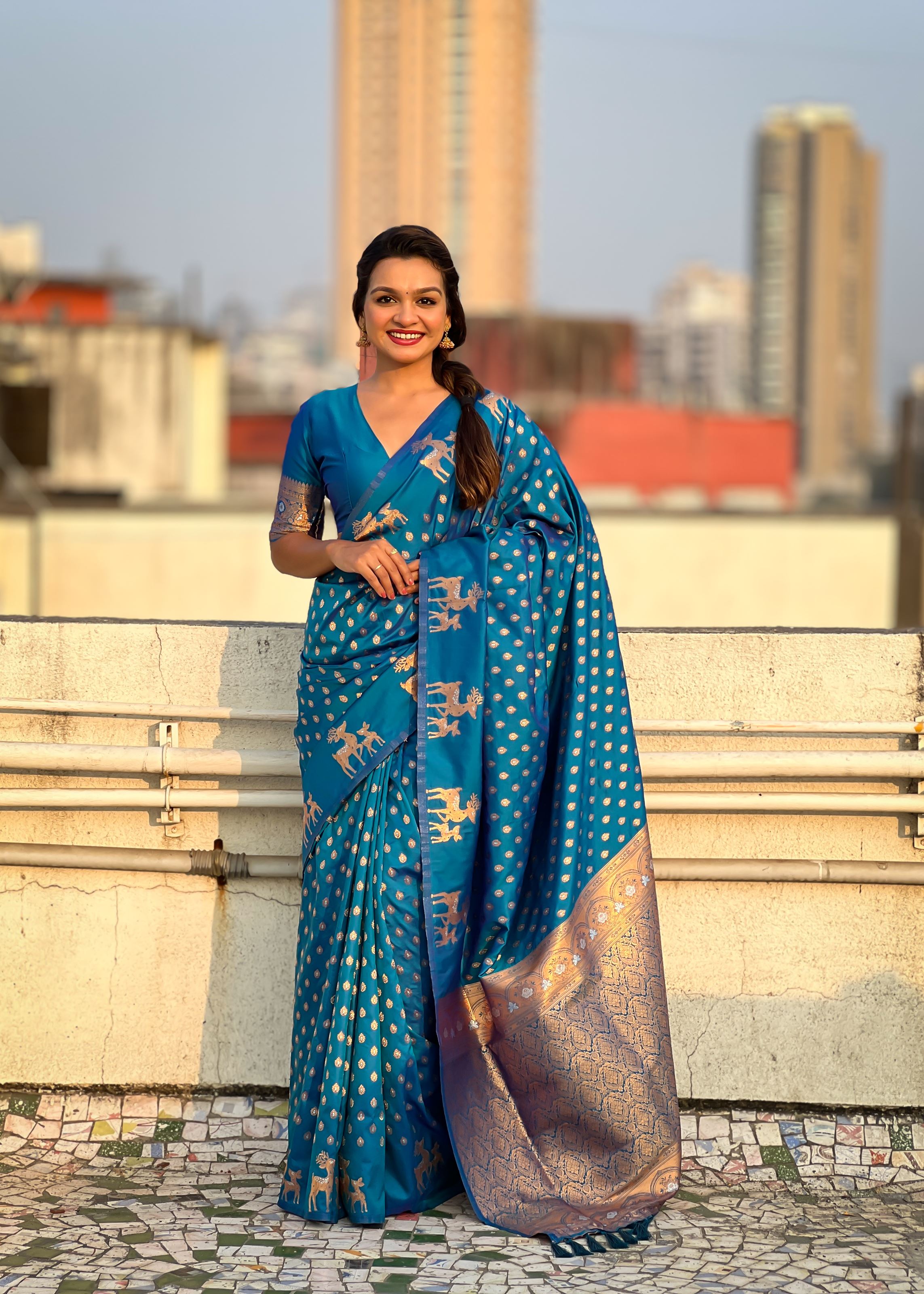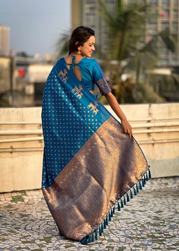 Weaving Dual Jari Designer Blue Soft Silk Ethnic Saree