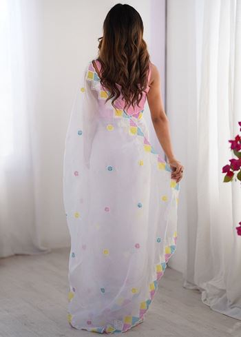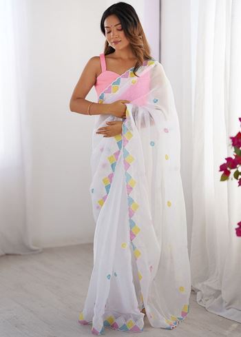 White Fancy Embroidery Work Jimmy Choo Girlie Bollywood Saree