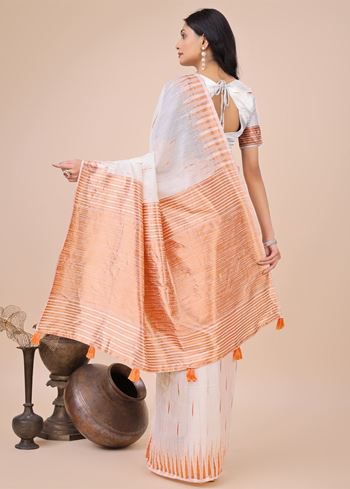 White Linen Cotton Woven Jacquard Designer Festive Wear Saree